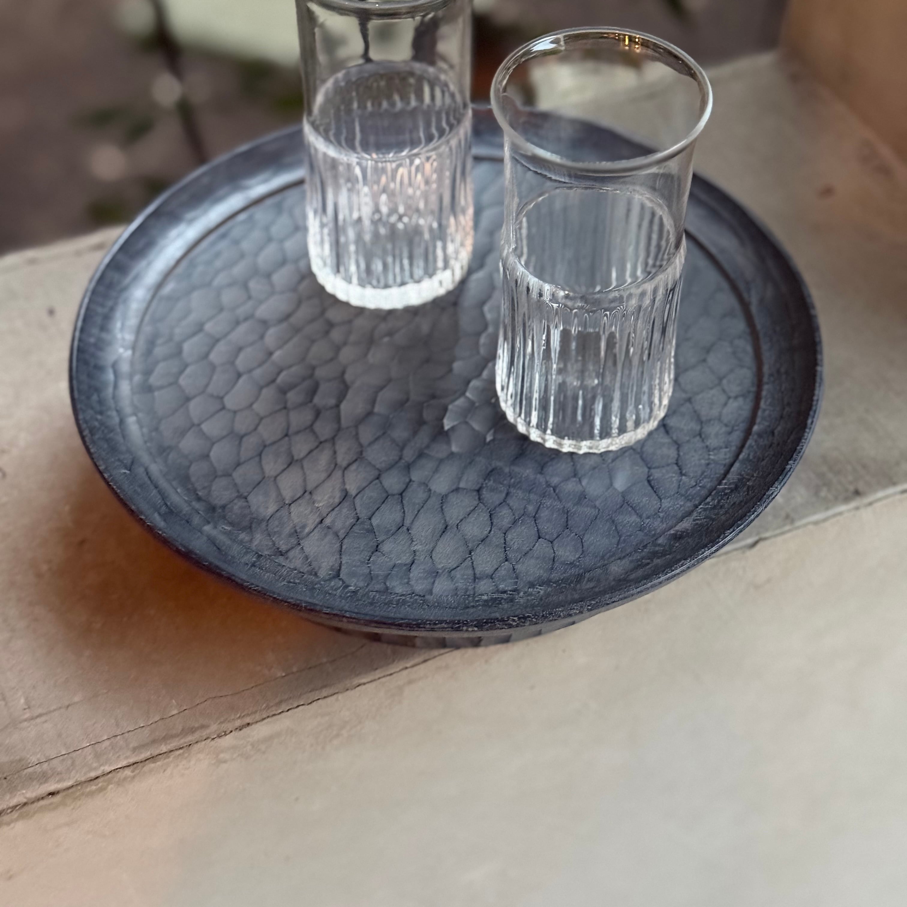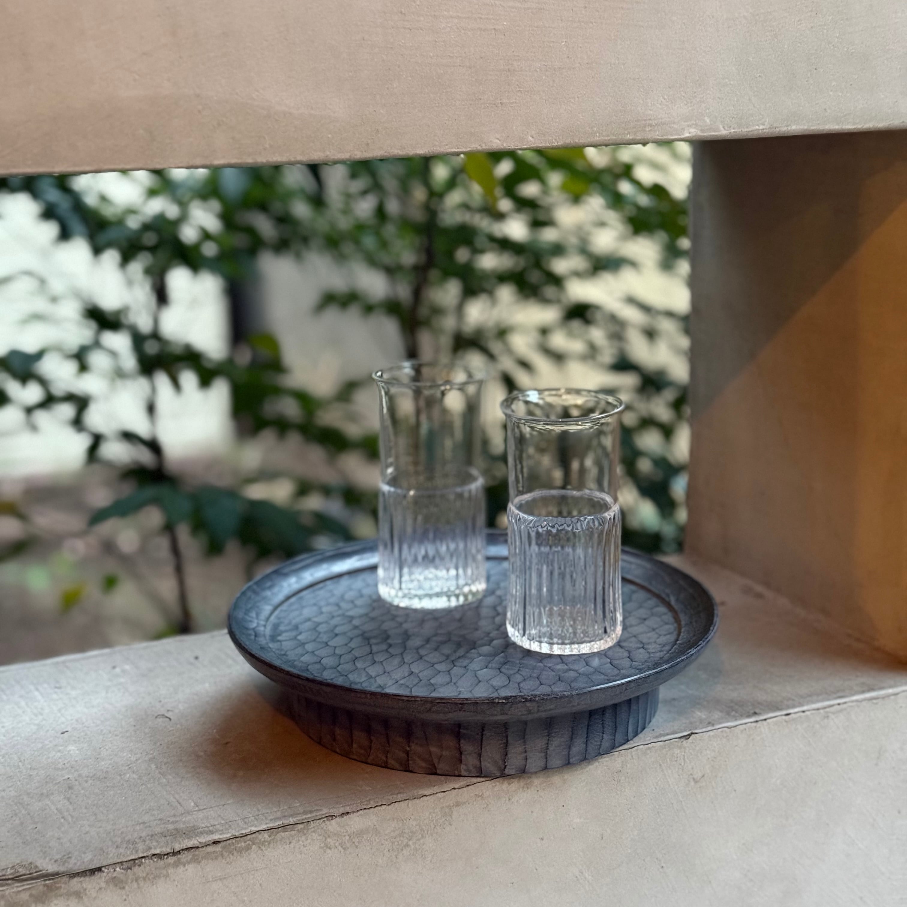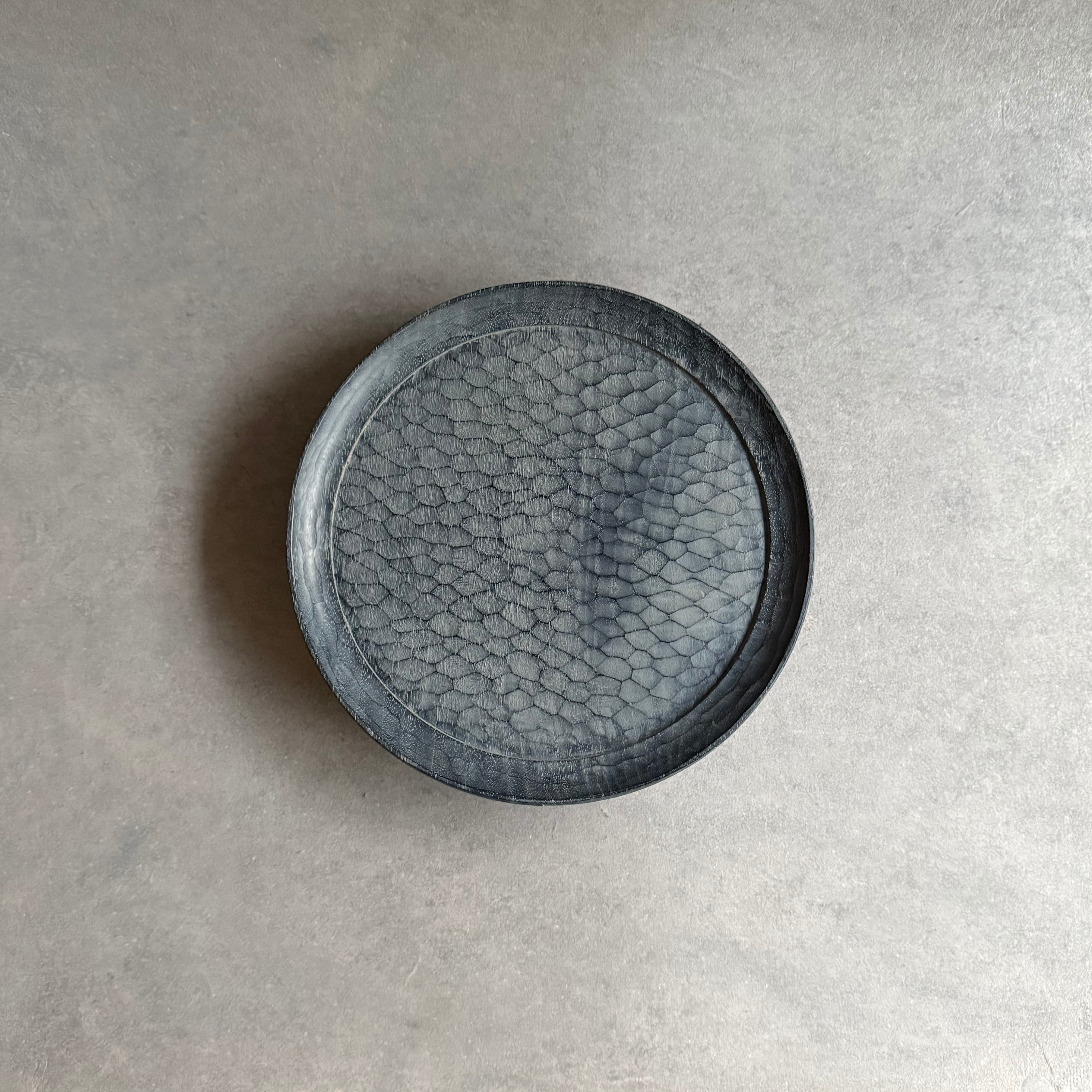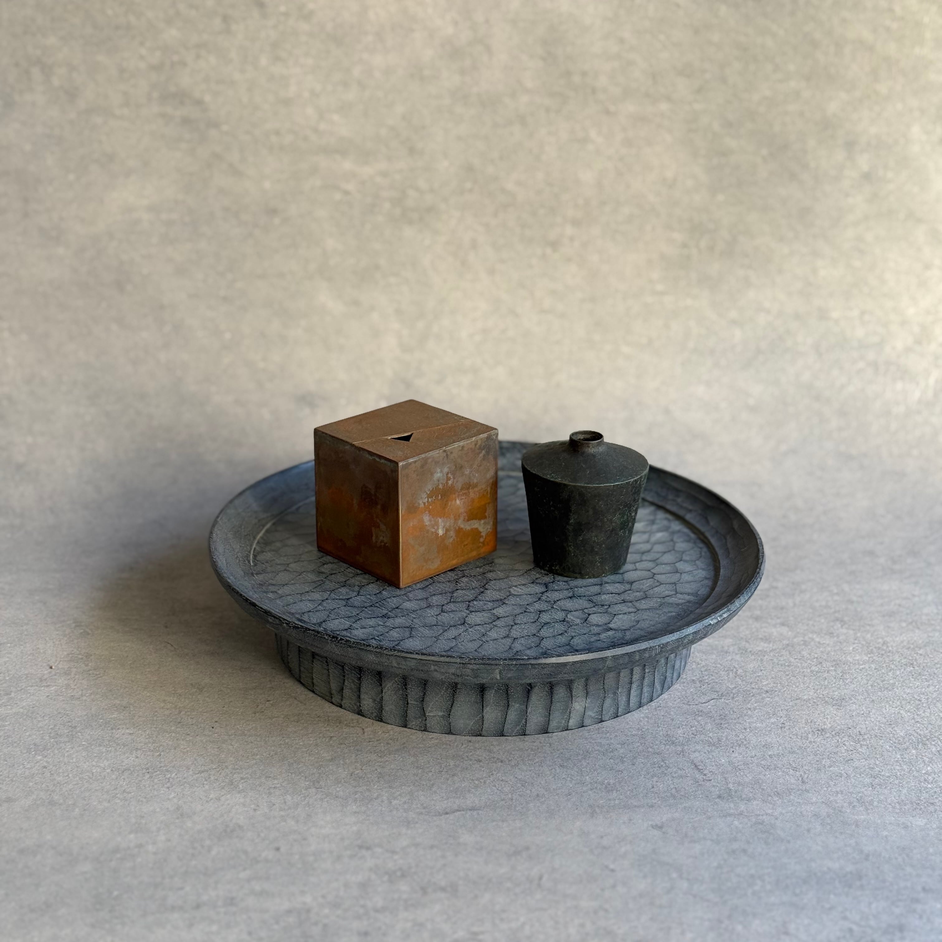 木と漆の質感を大切にしながら日常使いの器やお盆など、木の個性を生かした作品を制作される吉田欣司さん。程よい厚みの手彫りの仕上げは頼もしく、黒漆と白漆を何層にも塗り重ねて磨き上げる事で表れるブルーグレーの色合いはまるで霧を纏ったように柔らかく、使うほどに愛着が湧いてきます。