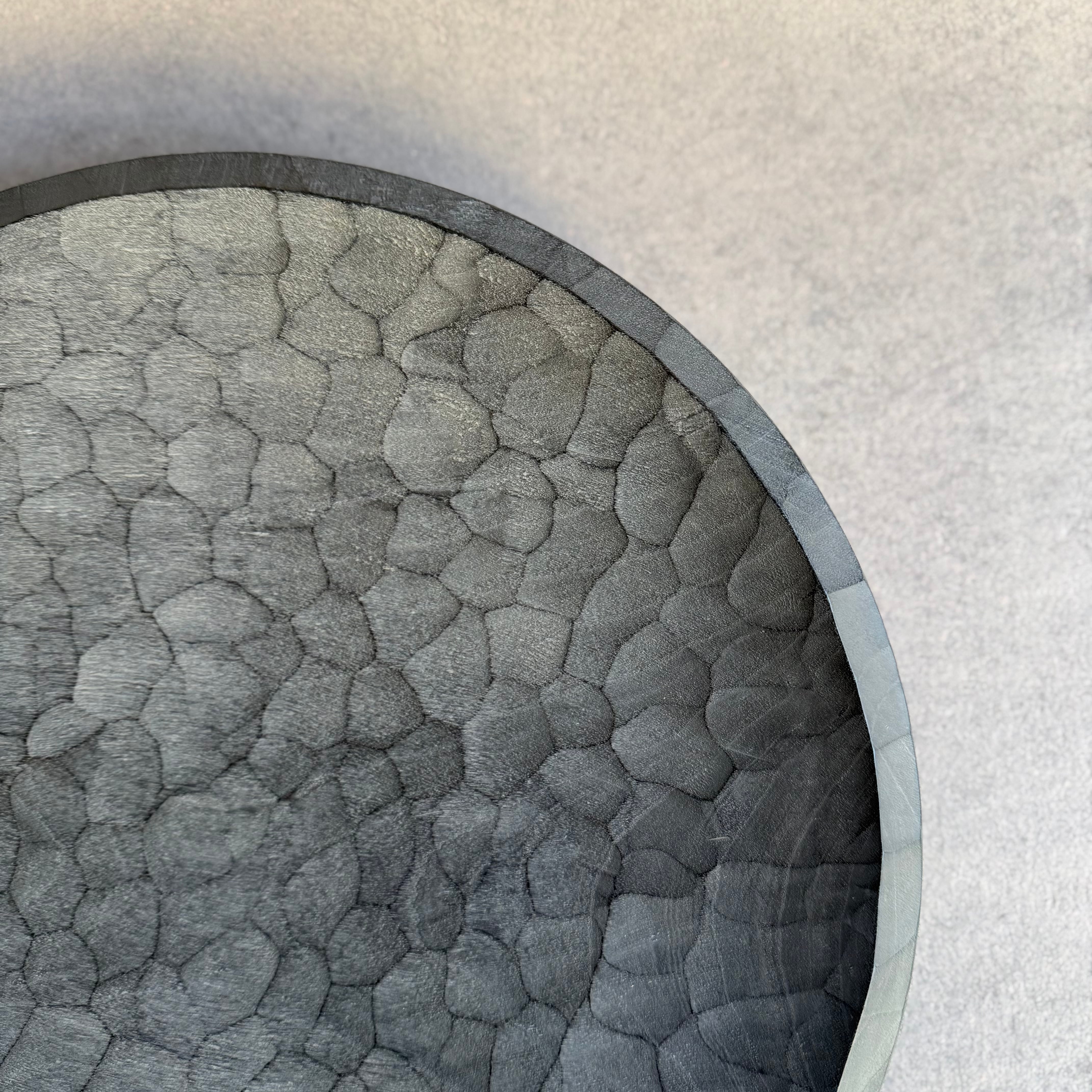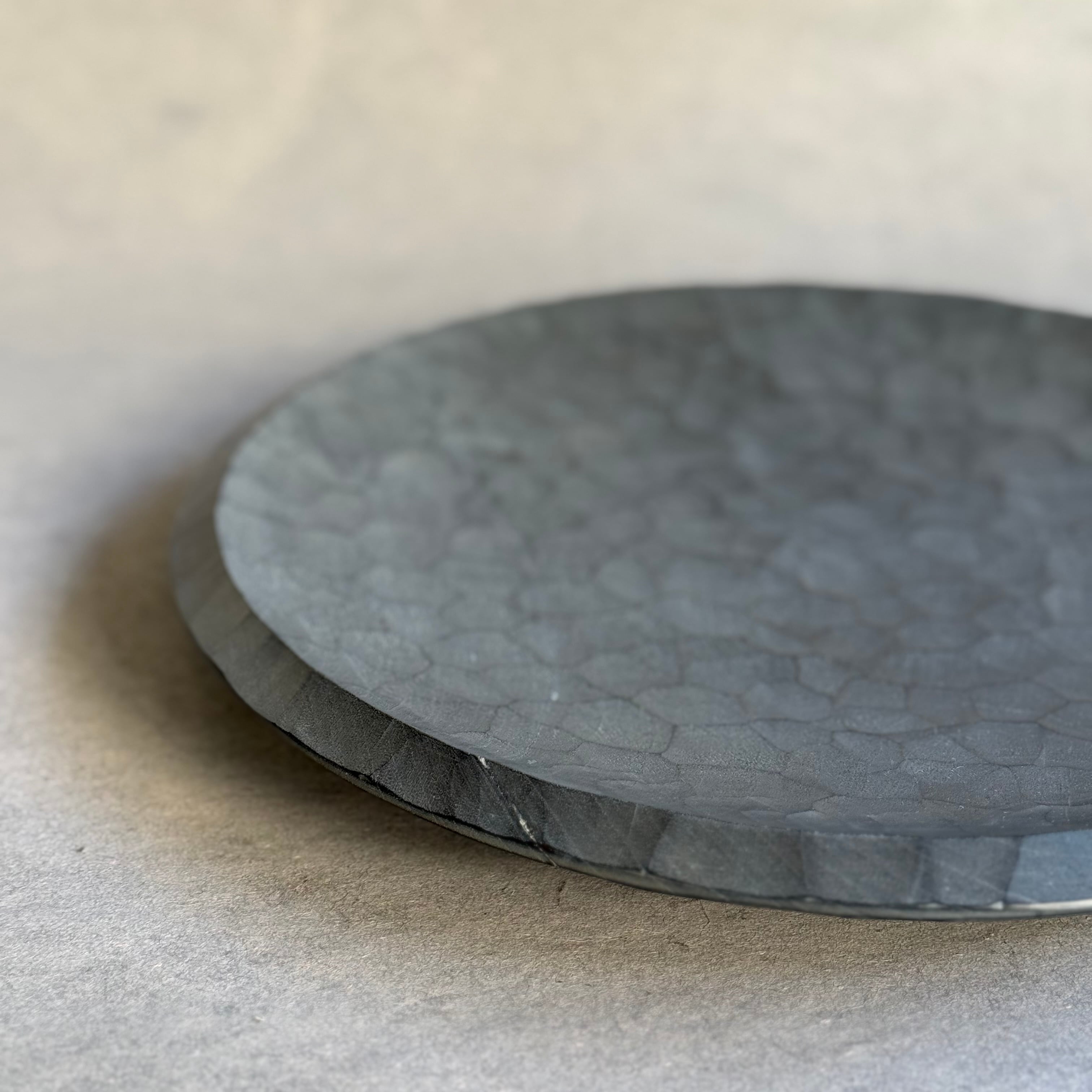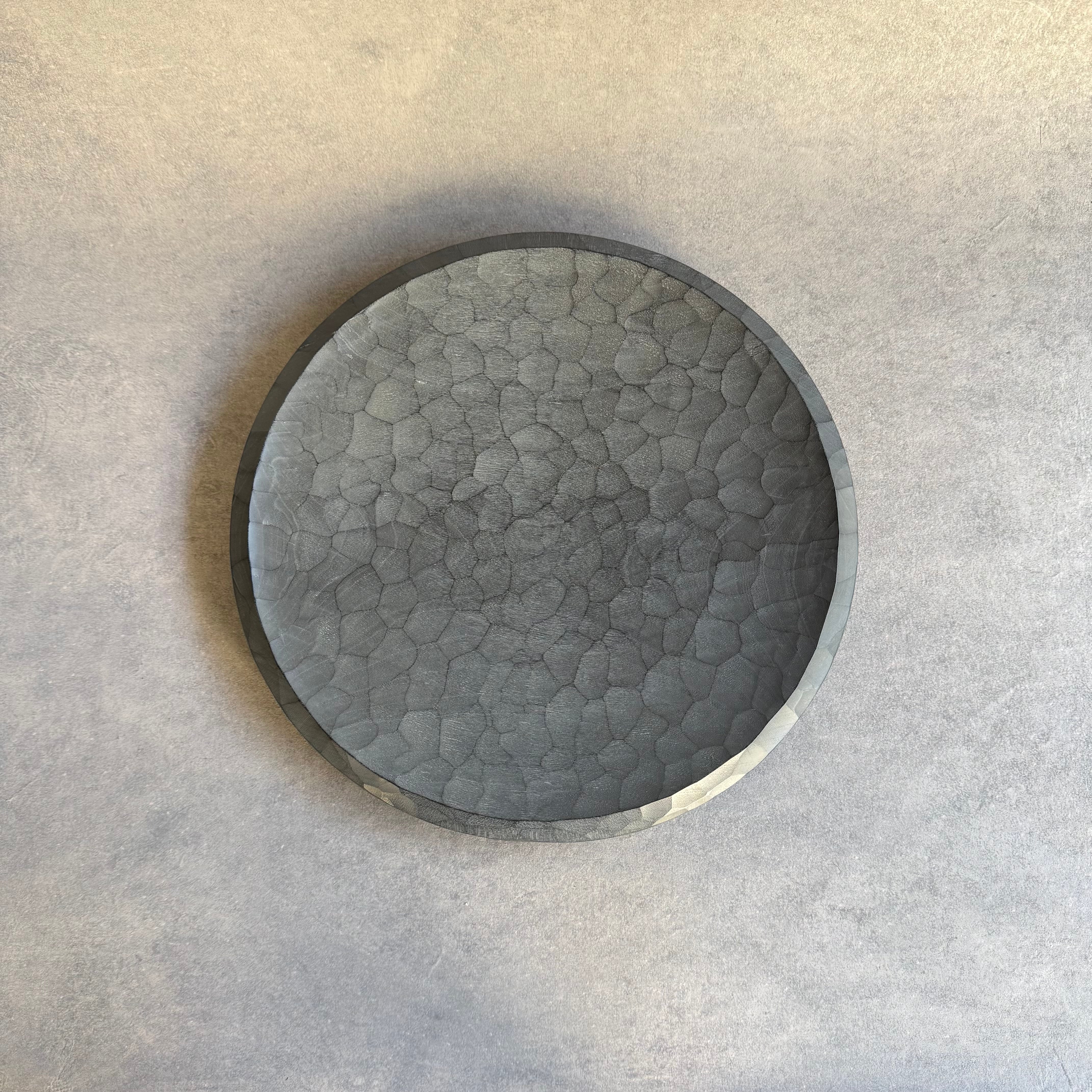 木と漆の質感を大切にしながら日常使いの器やお盆など、木の個性を生かした作品を制作される吉田欣司さん。程よい厚みの手彫りの仕上げは頼もしく、黒漆と白漆を何層にも塗り重ねて磨き上げる事で表れるブルーグレーの色合いはまるで霧を纏ったように柔らかく、使うほどに愛着が湧いてきます。