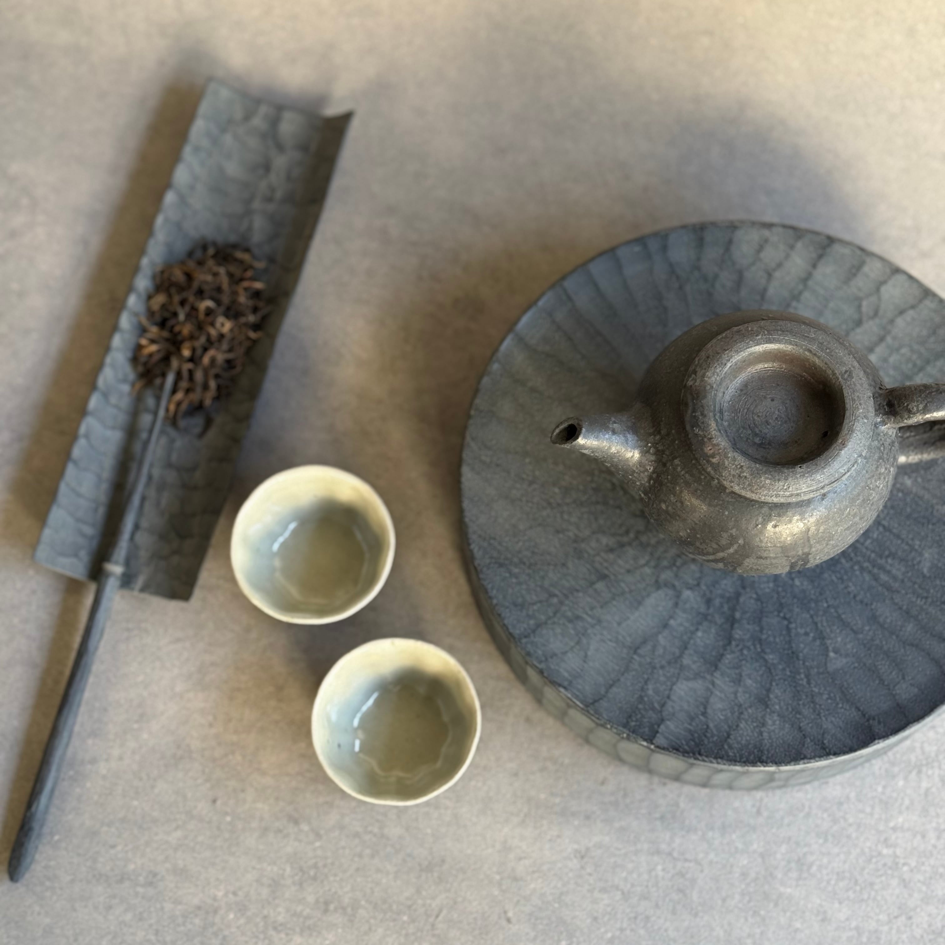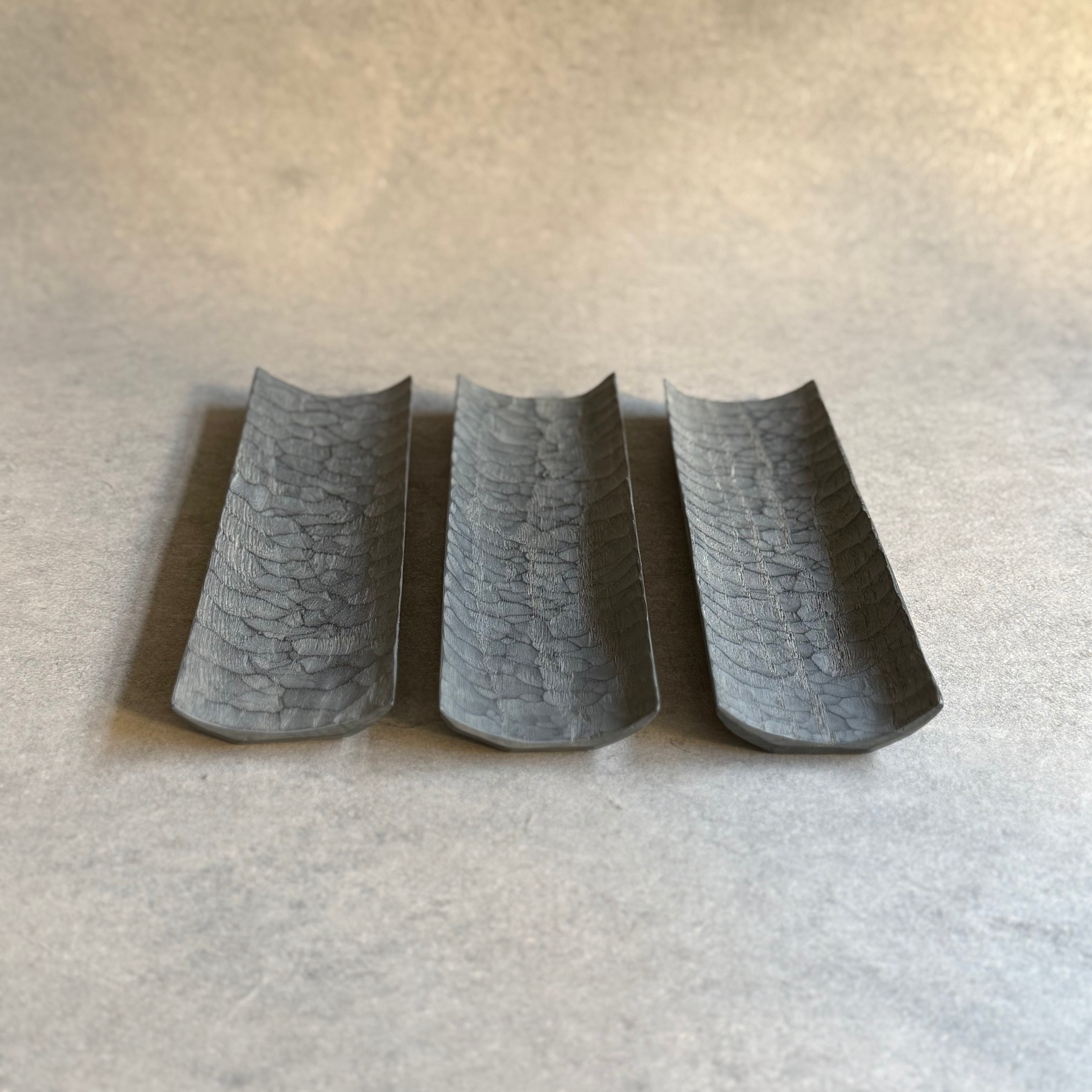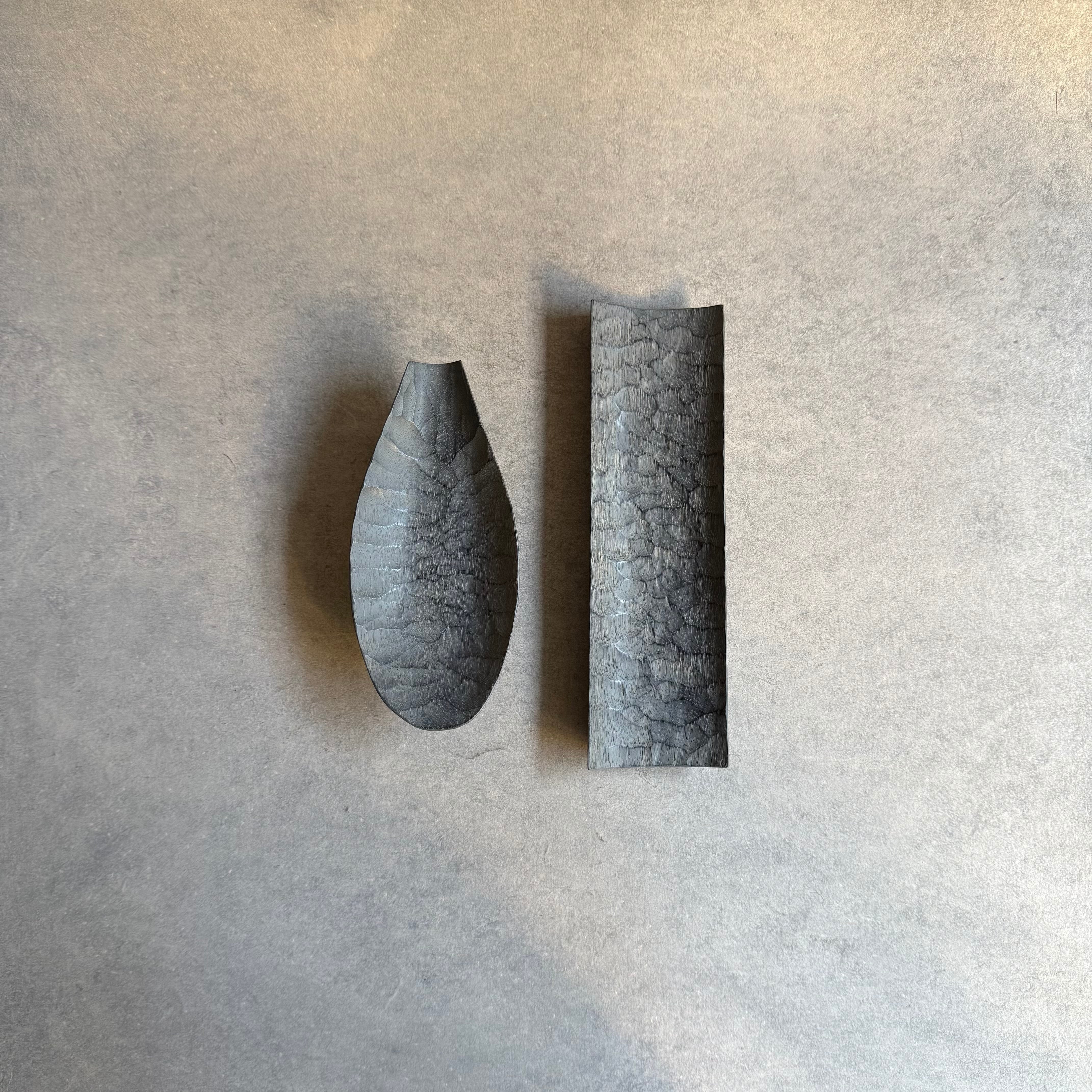 木と漆の質感を大切にしながら日常使いの器やお盆など、木の個性を生かした作品を制作される吉田欣司さん。程よい厚みの手彫りの仕上げは頼もしく、黒漆と白漆を何層にも塗り重ねて磨き上げる事で表れるブルーグレーの色合いはまるで霧を纏ったように柔らかく、使うほどに愛着が湧いてきます。