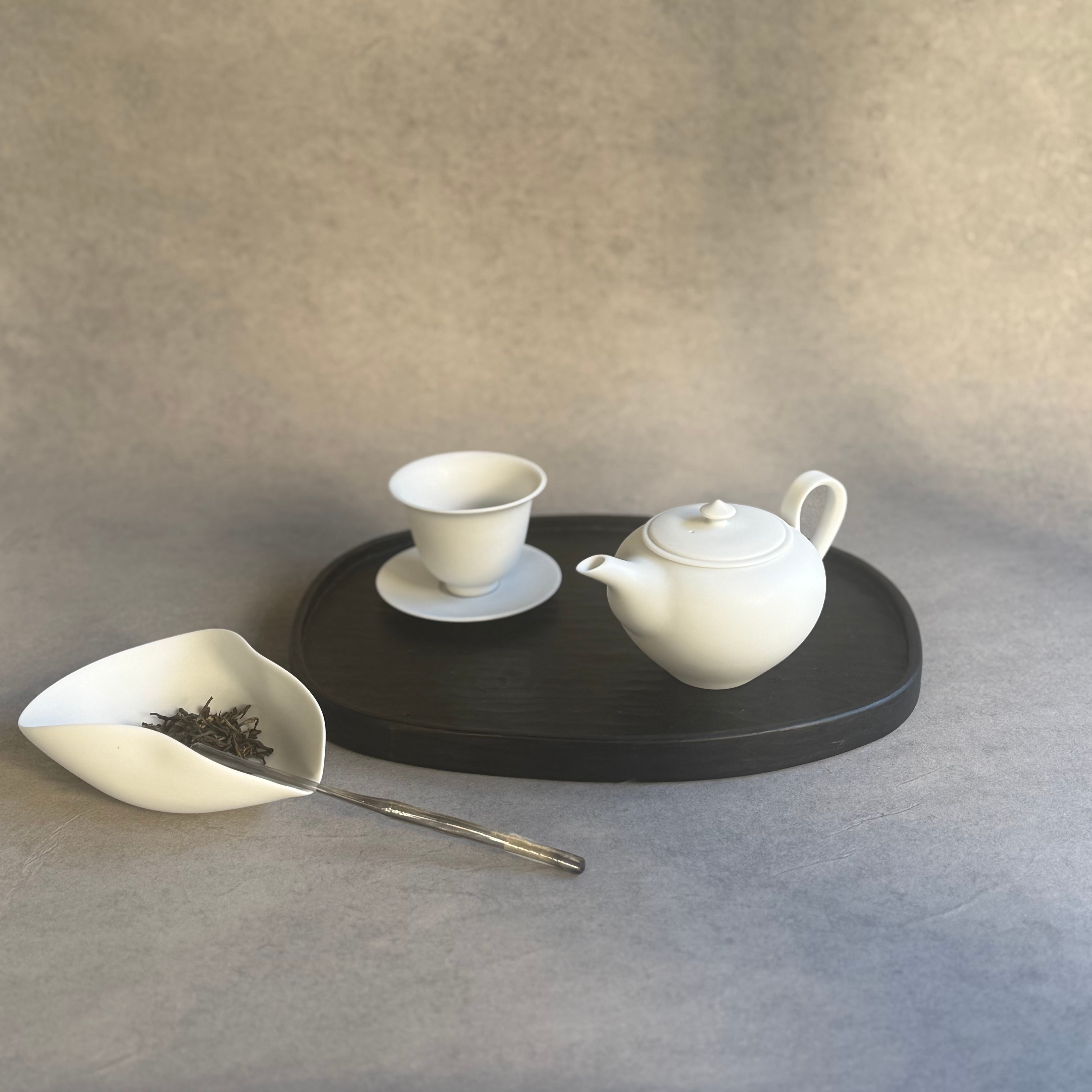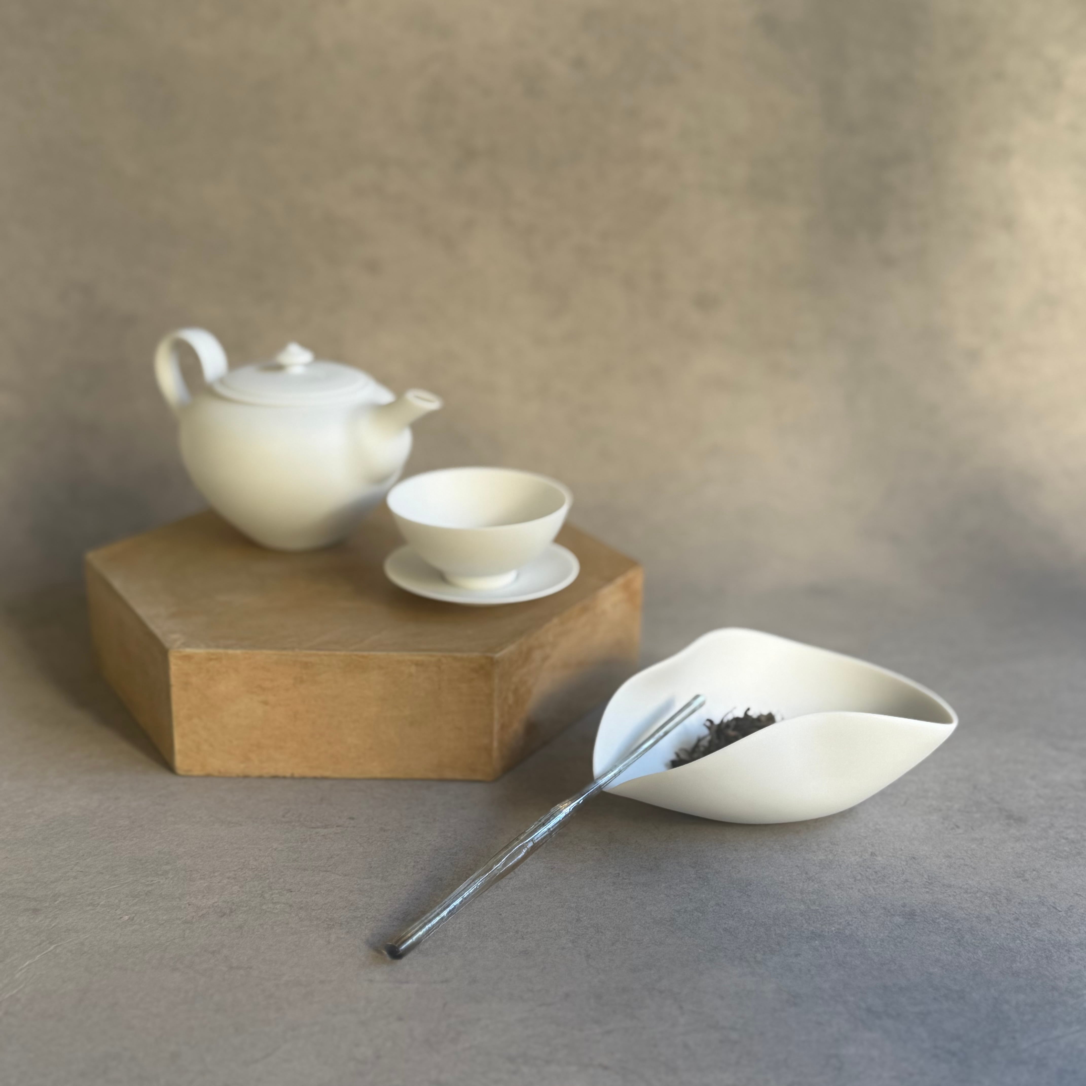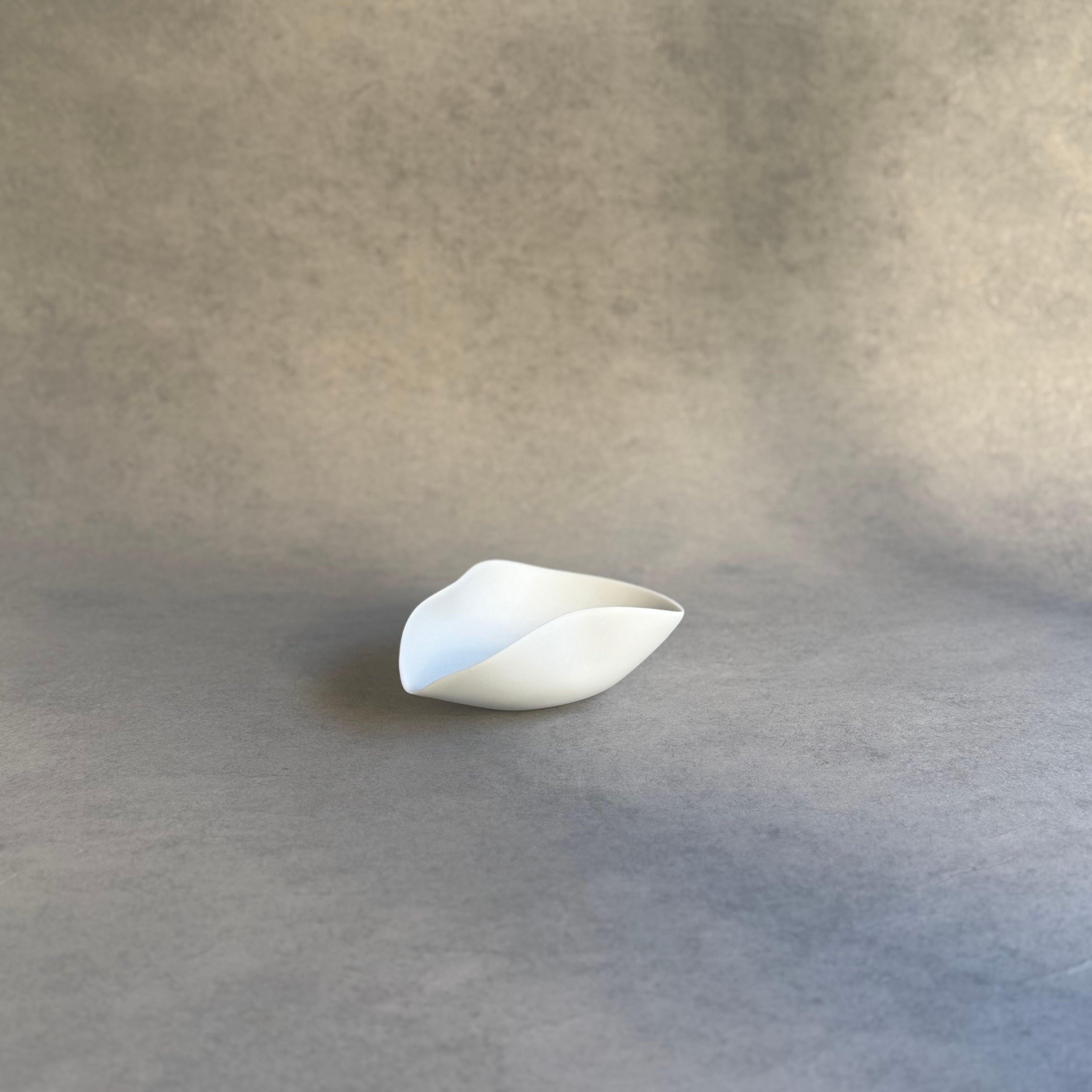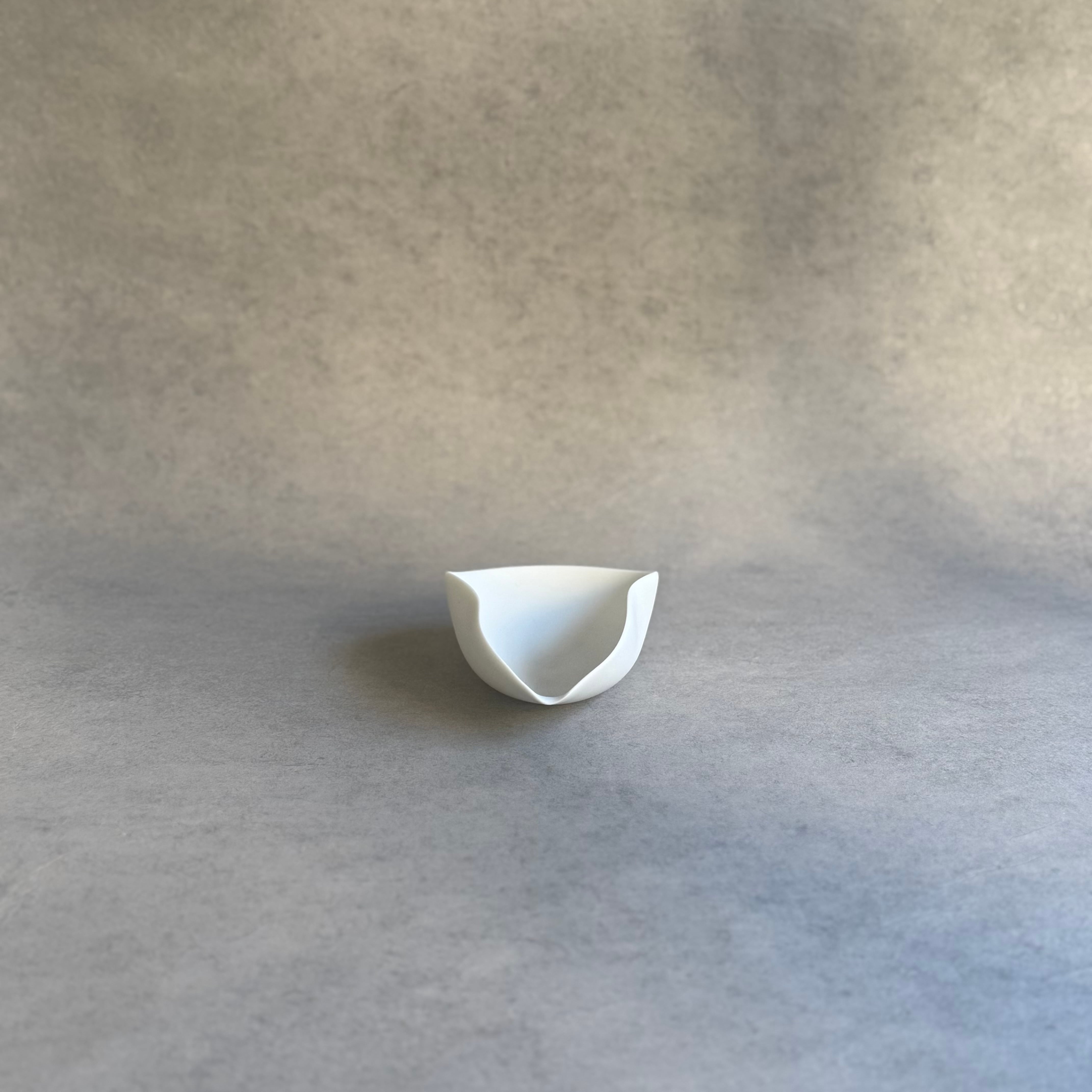 透過性の高い磁器土をロクロ成形し、無釉薬の焼き締めで制作。