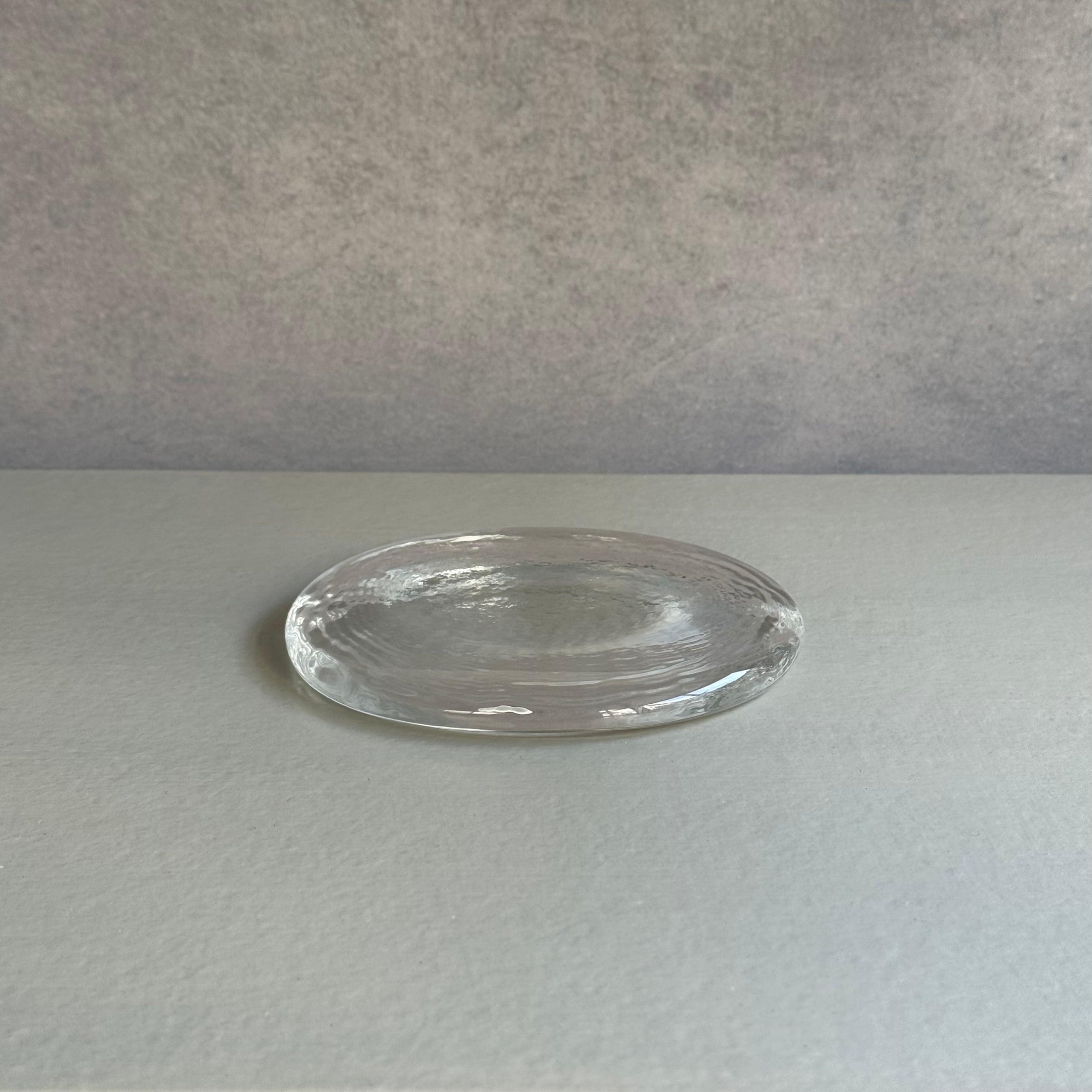 鉄板を溶接した型に硝子を吹き込むことで作られる表面の揺らぎの表情は、光を浴びて時間とともに変化する影に目を奪われます。その端々にまで宿る美しさは心地よい緊張感をもたらし、静謐なデザインは空間に安らぎを生み出します。