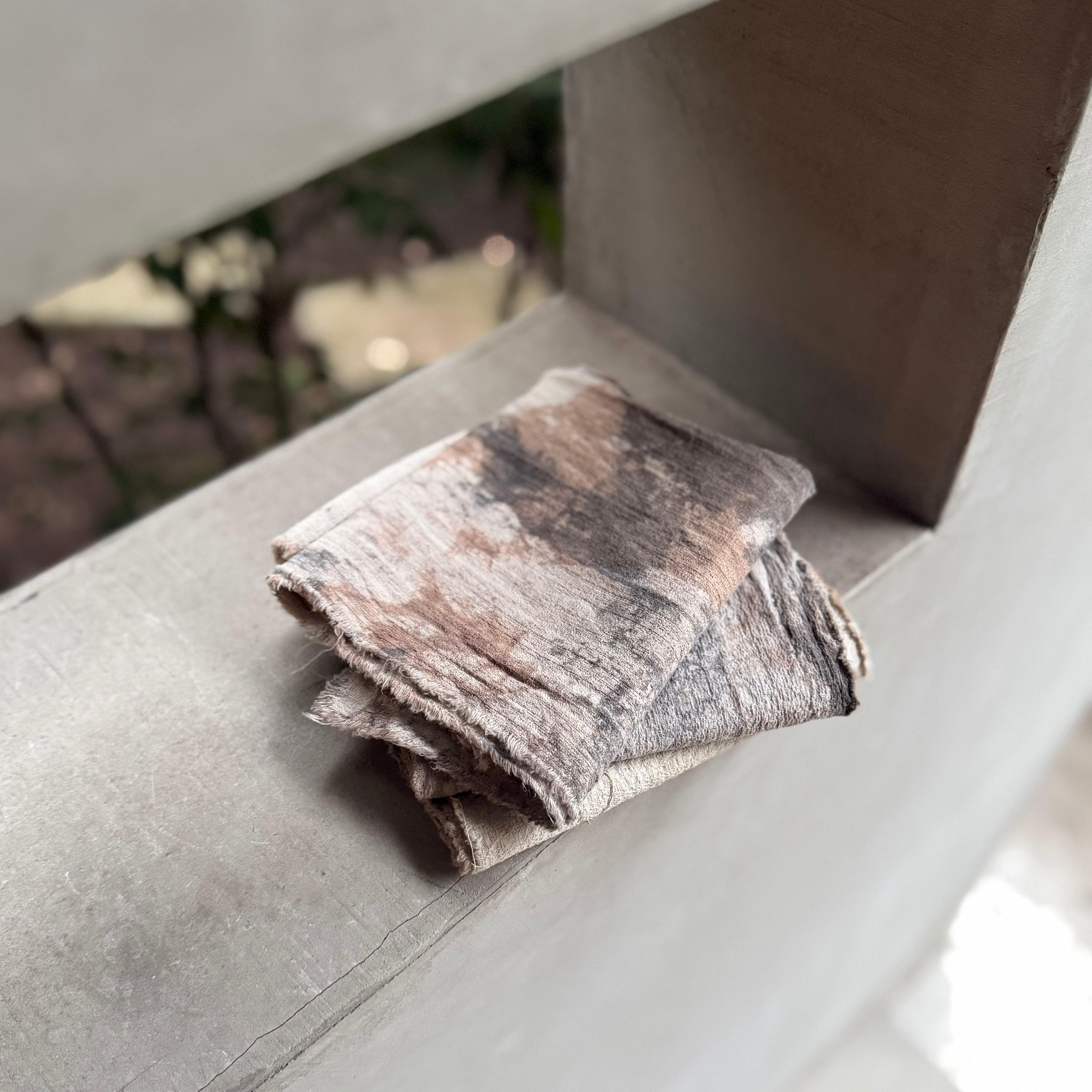 幾重にも染められた景色、土に埋められた風化布、手縫いの繕われた表情