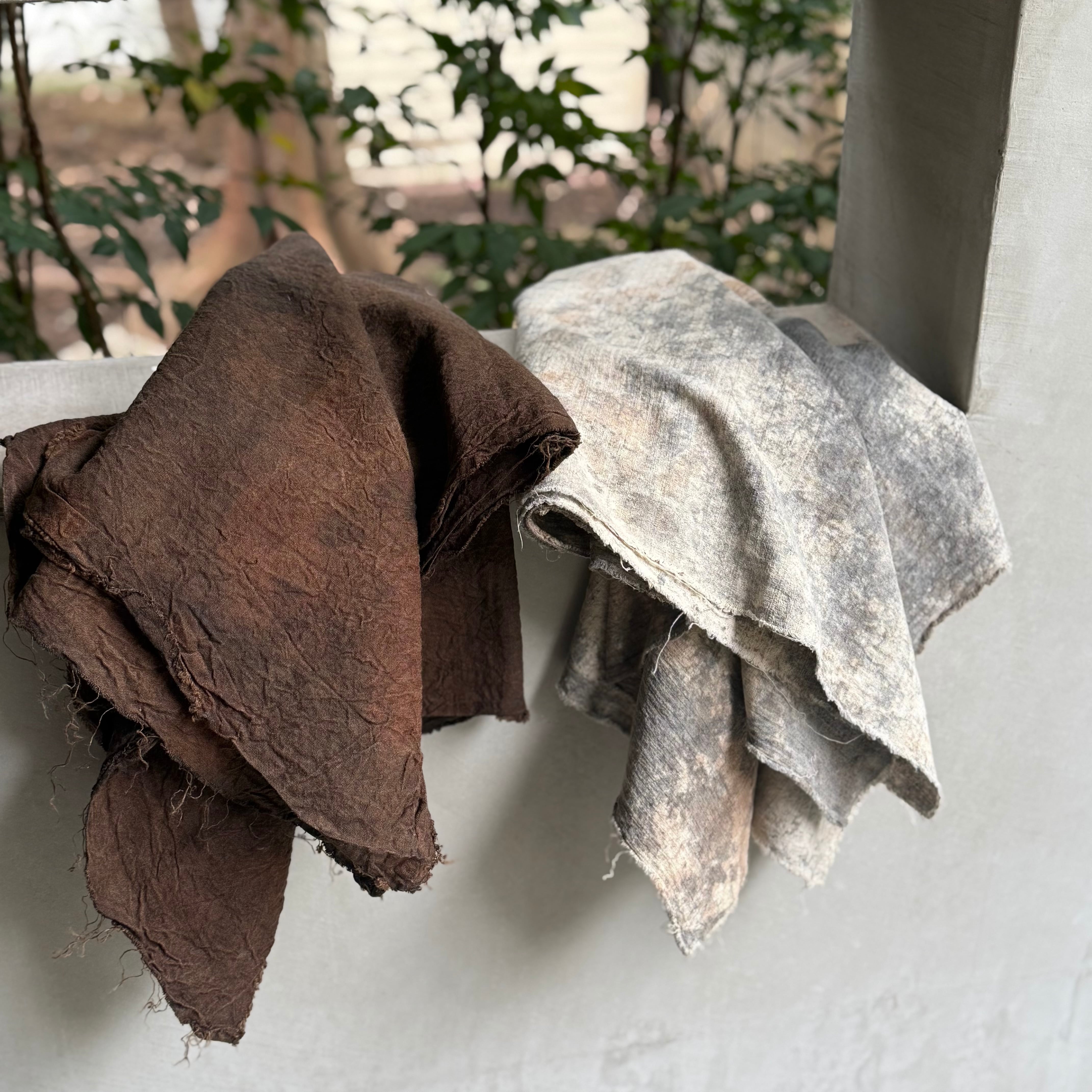 幾重にも染められた景色、土に埋められた風化布、手縫いの繕われた表情