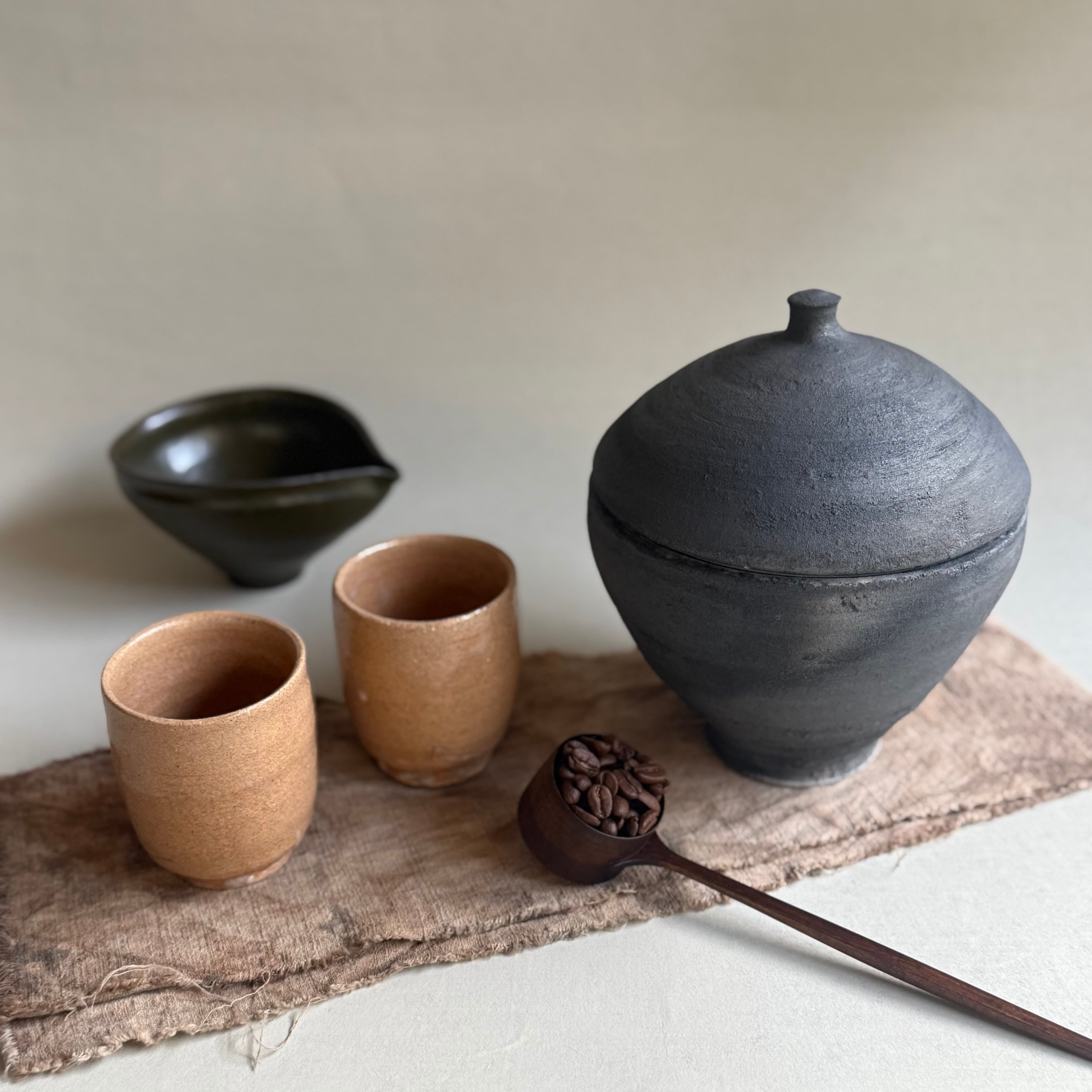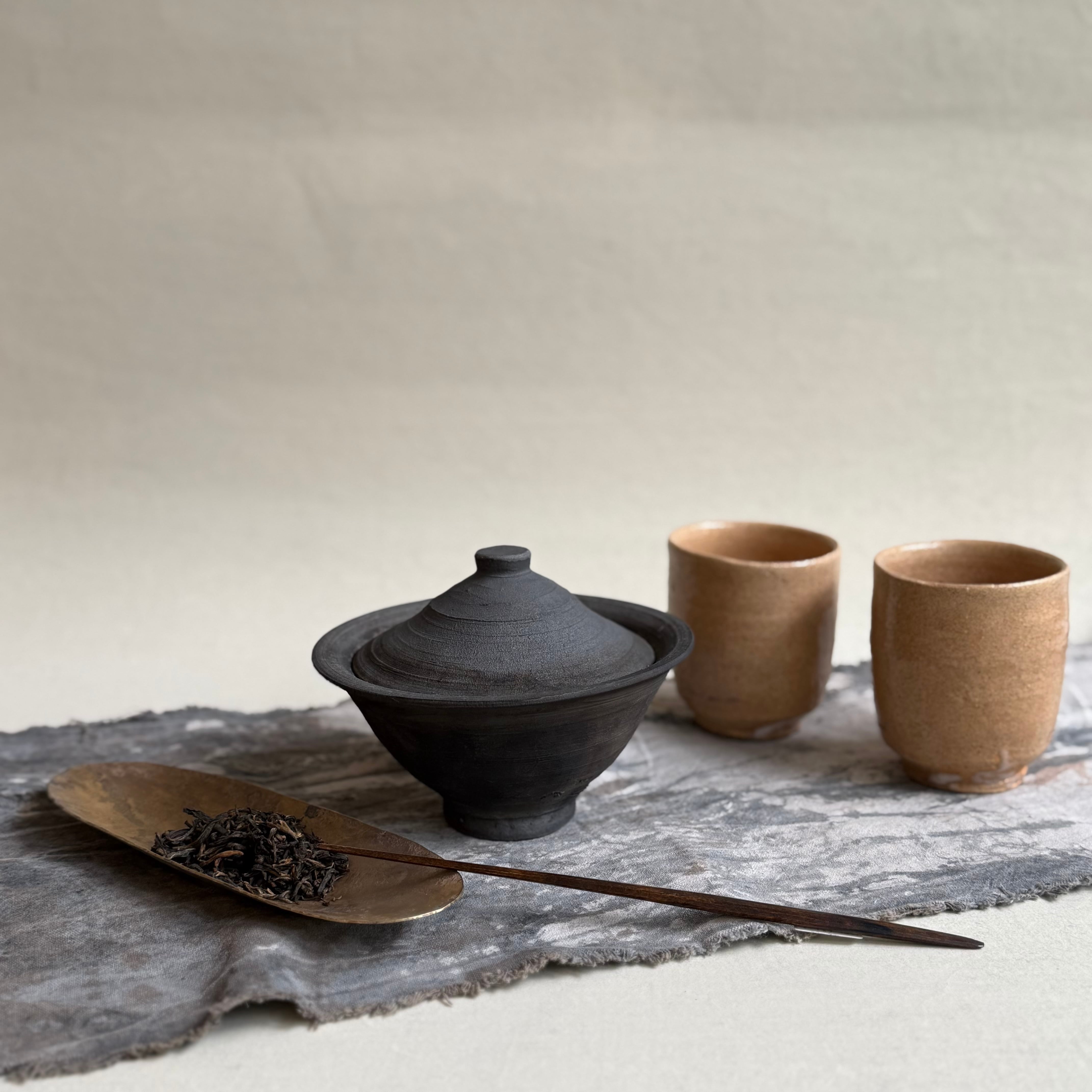 土を掘り灰を作り、存在感のある器づくりをされています。