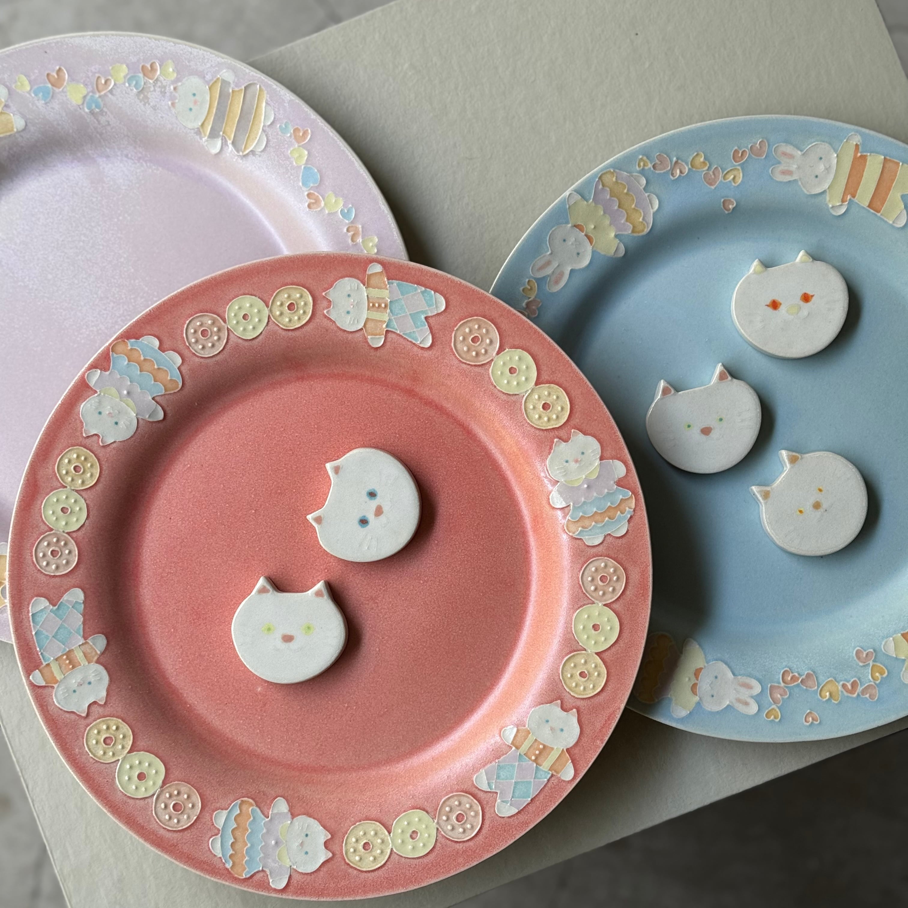色遊びを楽しむような柔らかなシャーベットカラーの色合いと、いっちんと呼ばれる繊細な模様を組み合わせて、日常遣いの器から蓋物や飾り皿や花器など幅広く制作される中村 かりんさん。