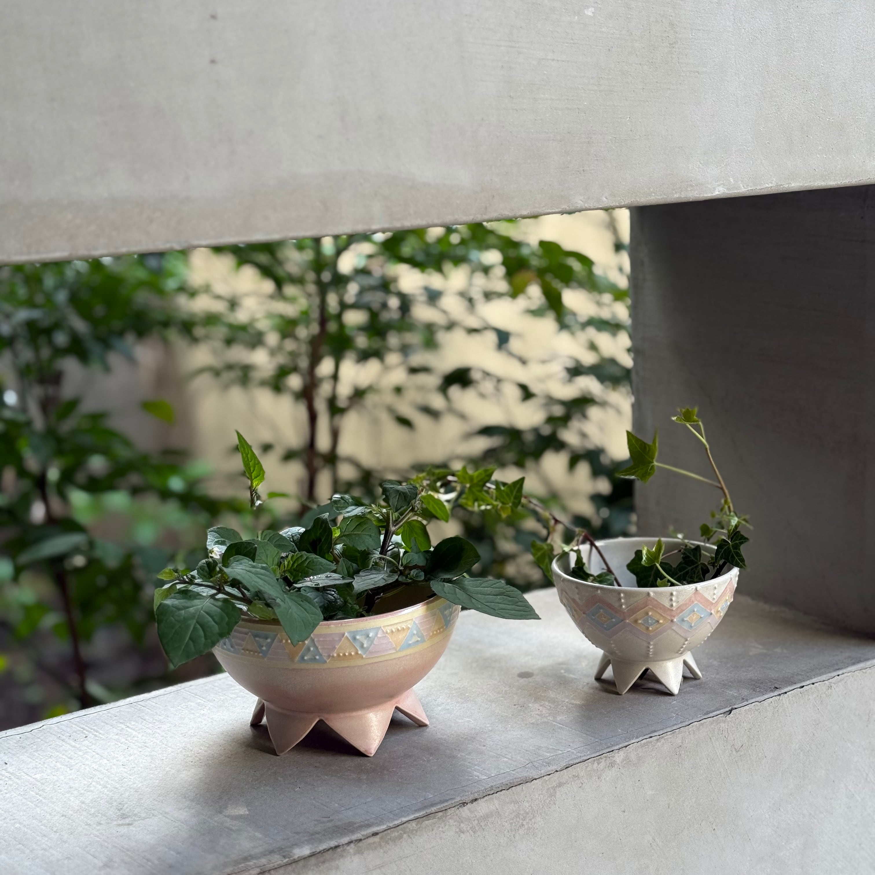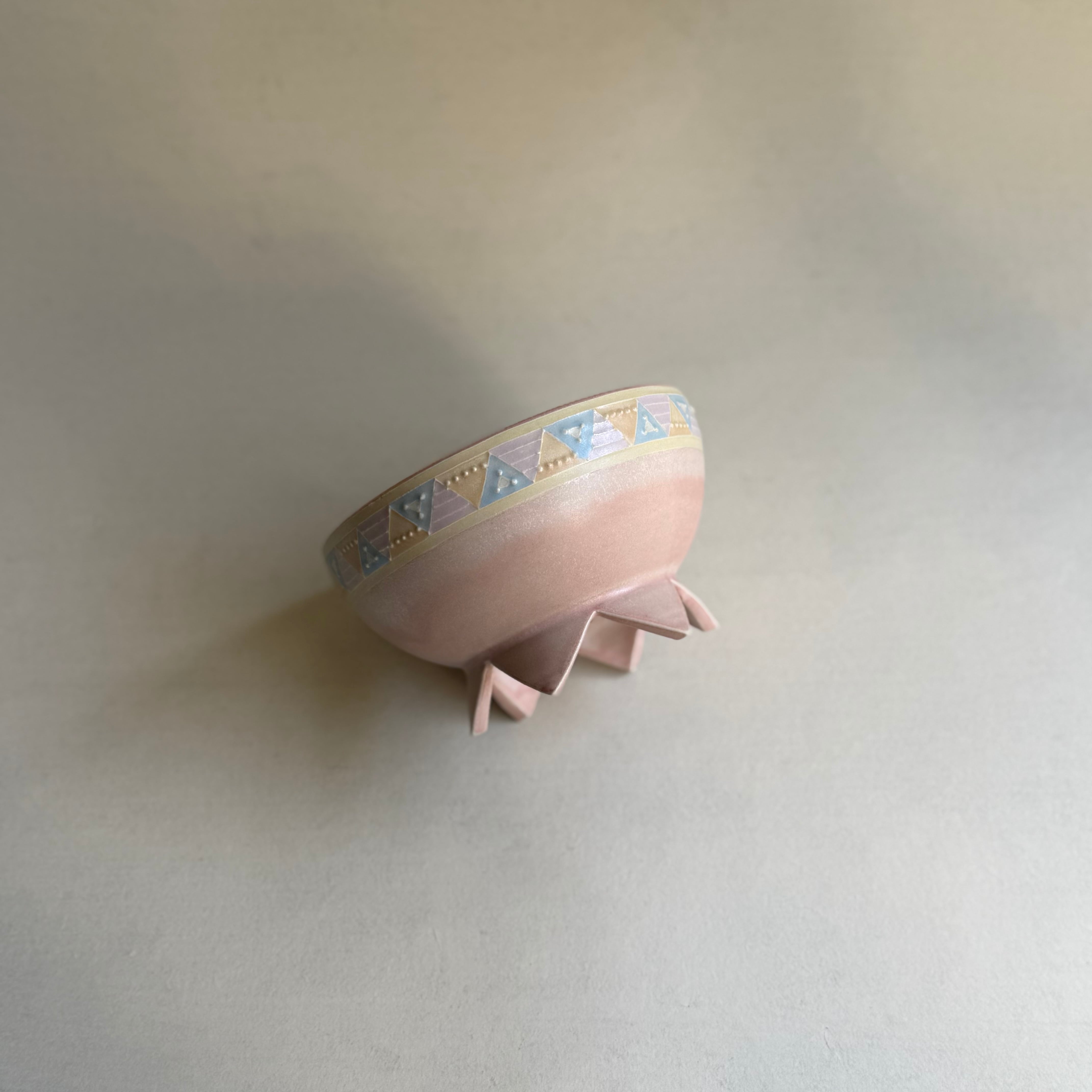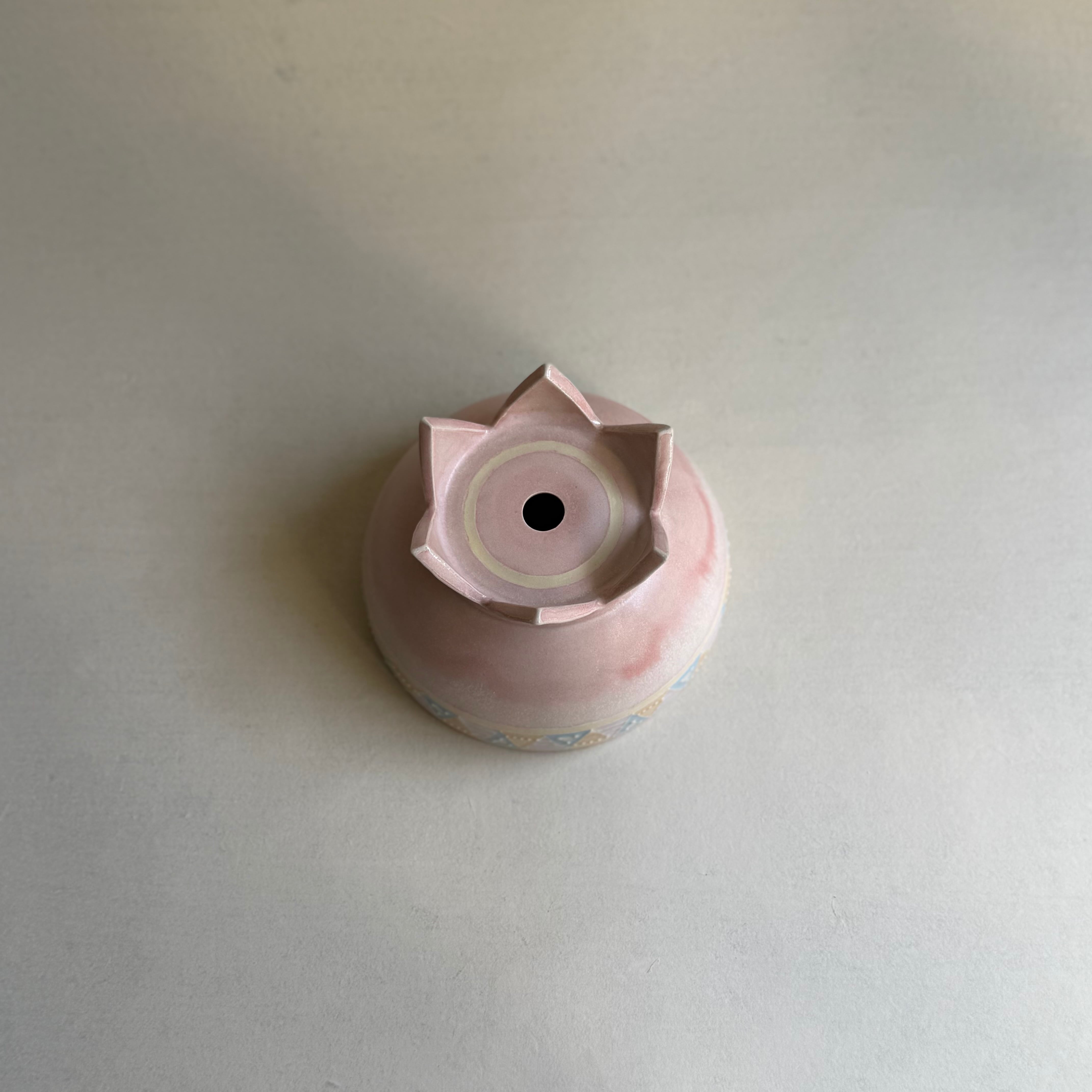 色遊びを楽しむような柔らかなシャーベットカラーの色合いと、いっちんと呼ばれる繊細な模様を組み合わせて、日常遣いの器から蓋物や飾り皿や花器など幅広く制作される中村 かりんさん。