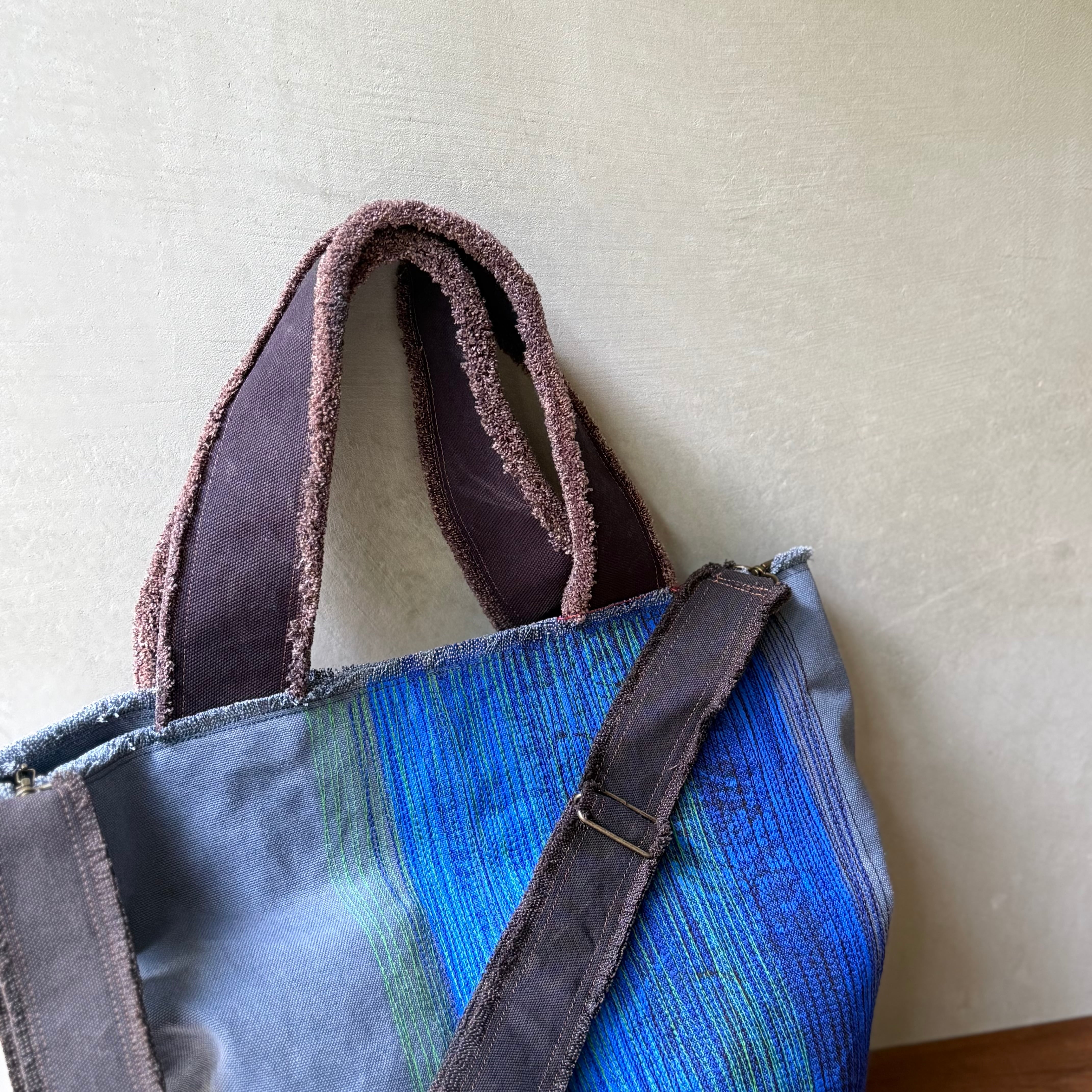 帆布を染め、ペイントし、ミシンでステッチを入れバッグや帽子や小物を制作されるYumemibagさん。水玉やクロス模様、海や空の風景のようなステッチ、カラフルな色彩が美しい作品はまるでキャンバスに描かれた絵画です。毎日使っても頼もしく、お出掛けが一層楽しくなることでしょう。