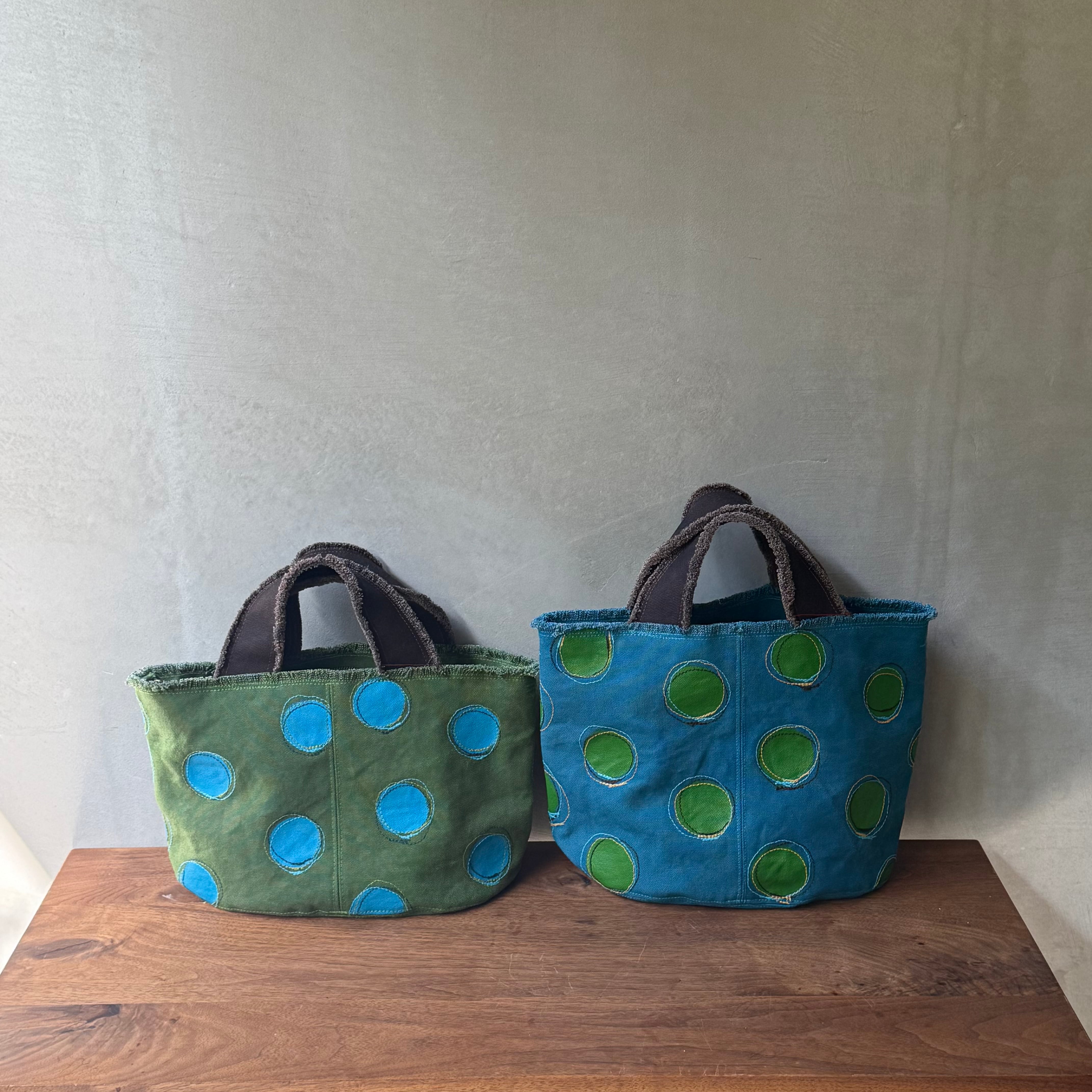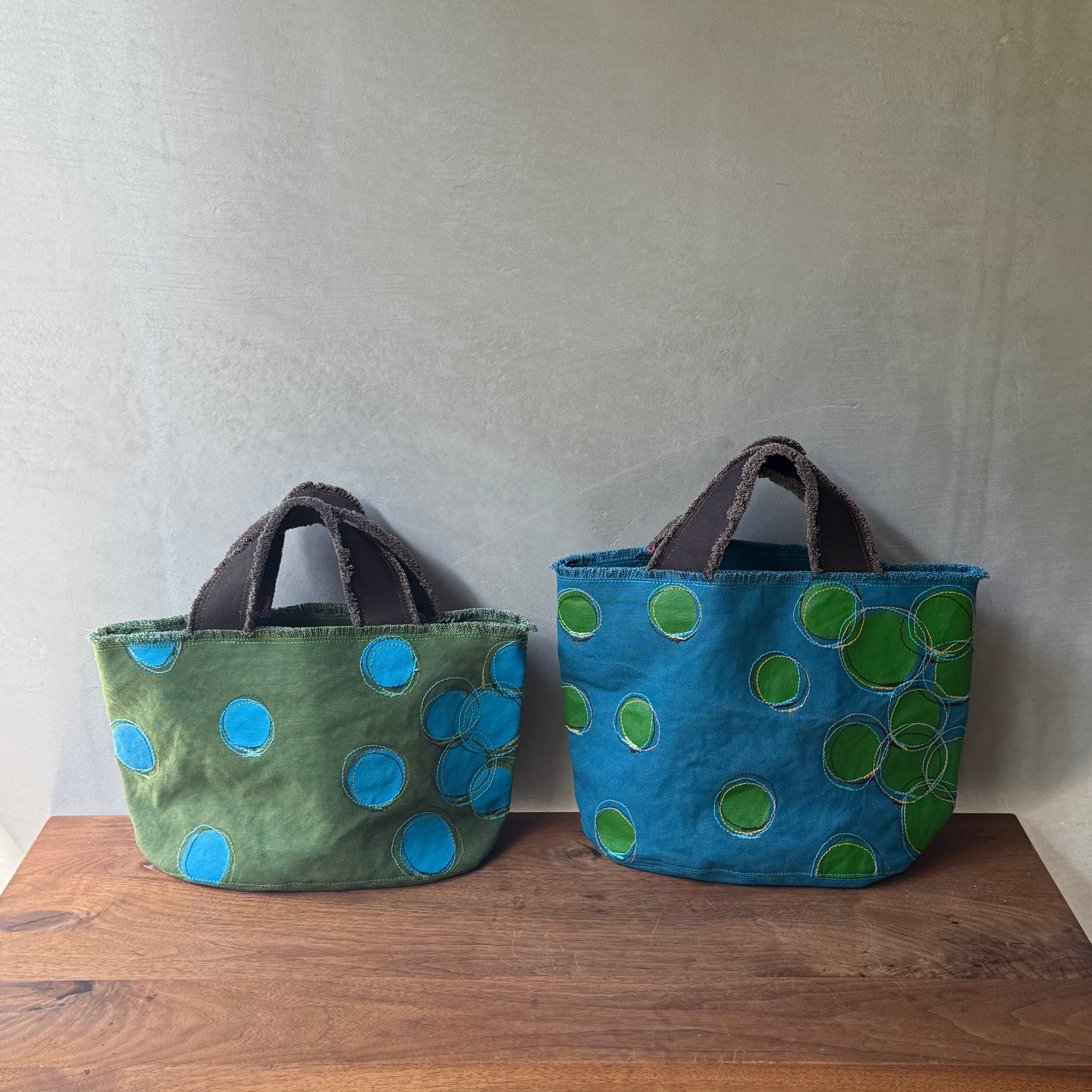 帆布を染め、ペイントし、ミシンでステッチを入れバッグや帽子や小物を制作されるYumemibagさん。水玉やクロス模様、海や空の風景のようなステッチ、カラフルな色彩が美しい作品はまるでキャンバスに描かれた絵画です。毎日使っても頼もしく、お出掛けが一層楽しくなることでしょう。