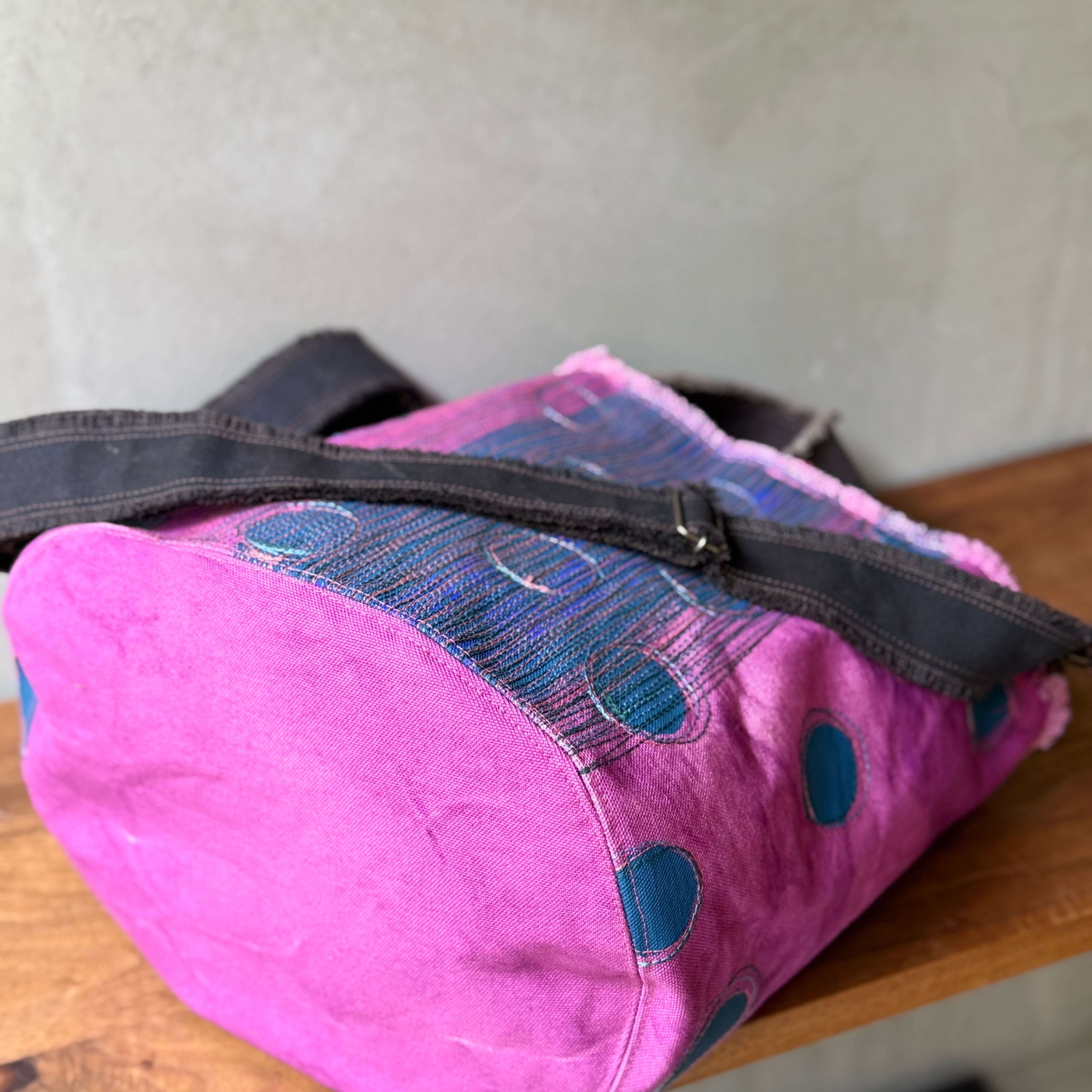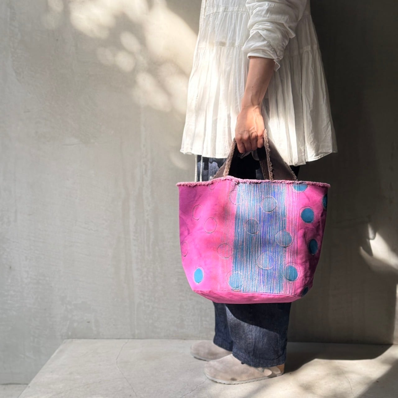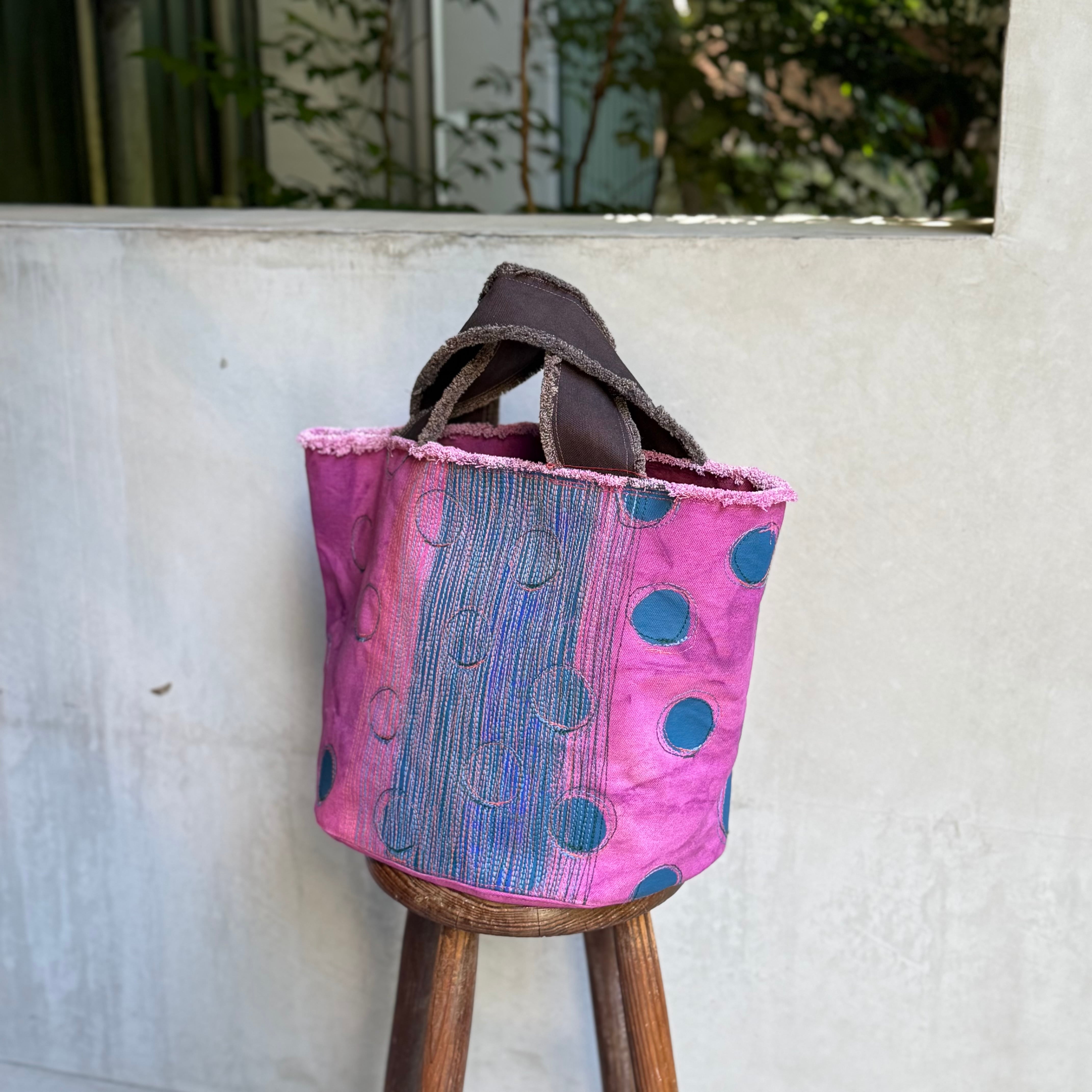 帆布を染め、ペイントし、ミシンでステッチを入れバッグや帽子や小物を制作されるYumemibagさん。水玉やクロス模様、海や空の風景のようなステッチ、カラフルな色彩が美しい作品はまるでキャンバスに描かれた絵画です。毎日使っても頼もしく、お出掛けが一層楽しくなることでしょう。