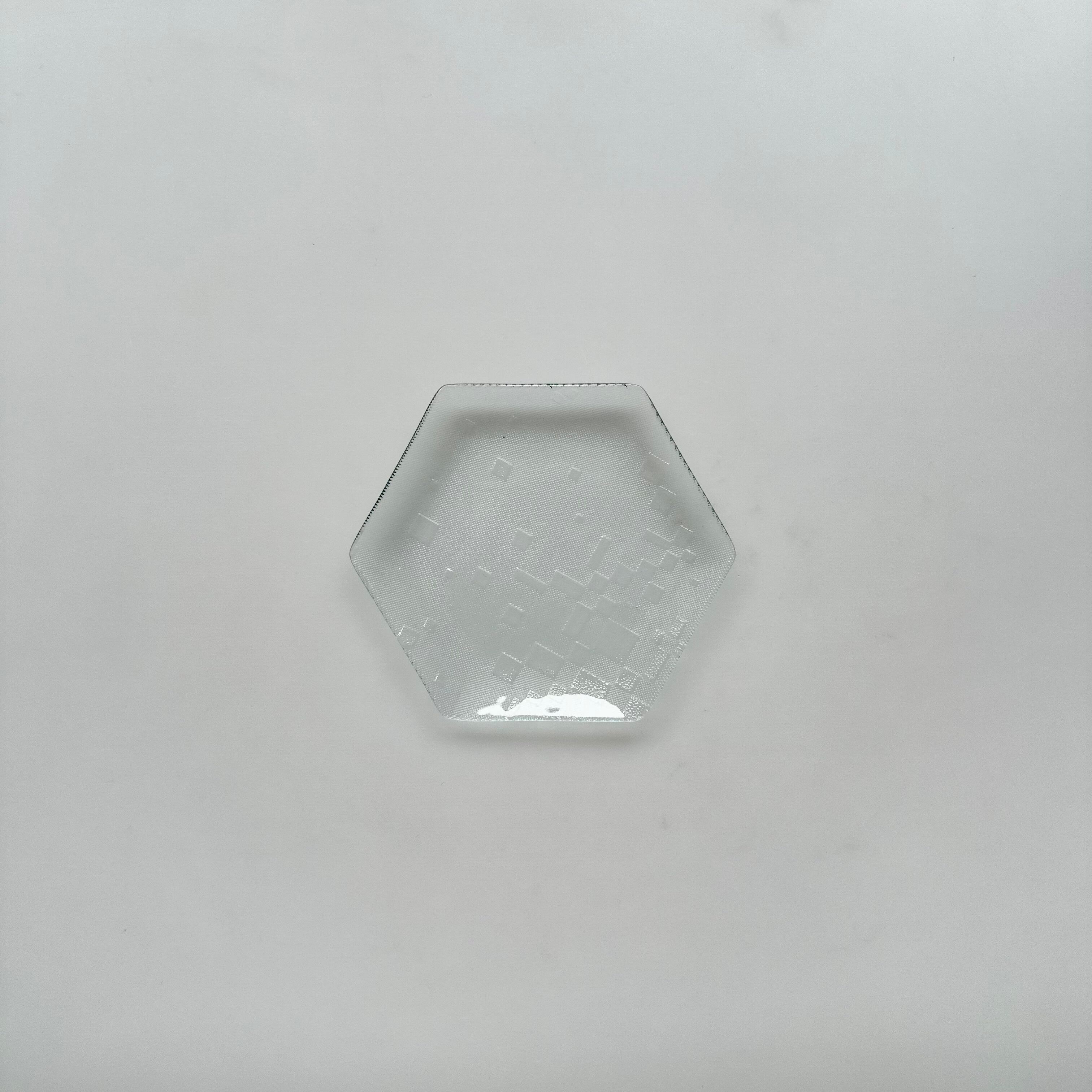 昭和の懐かしいレトロガラスは表面の凹凸感が味わい深く、ノスタルジックな雰囲気とモダンなフォルムを併せ持った美しい六角皿は、菓子皿や茶托やアクセサリー置きなど様々にお楽しみください。