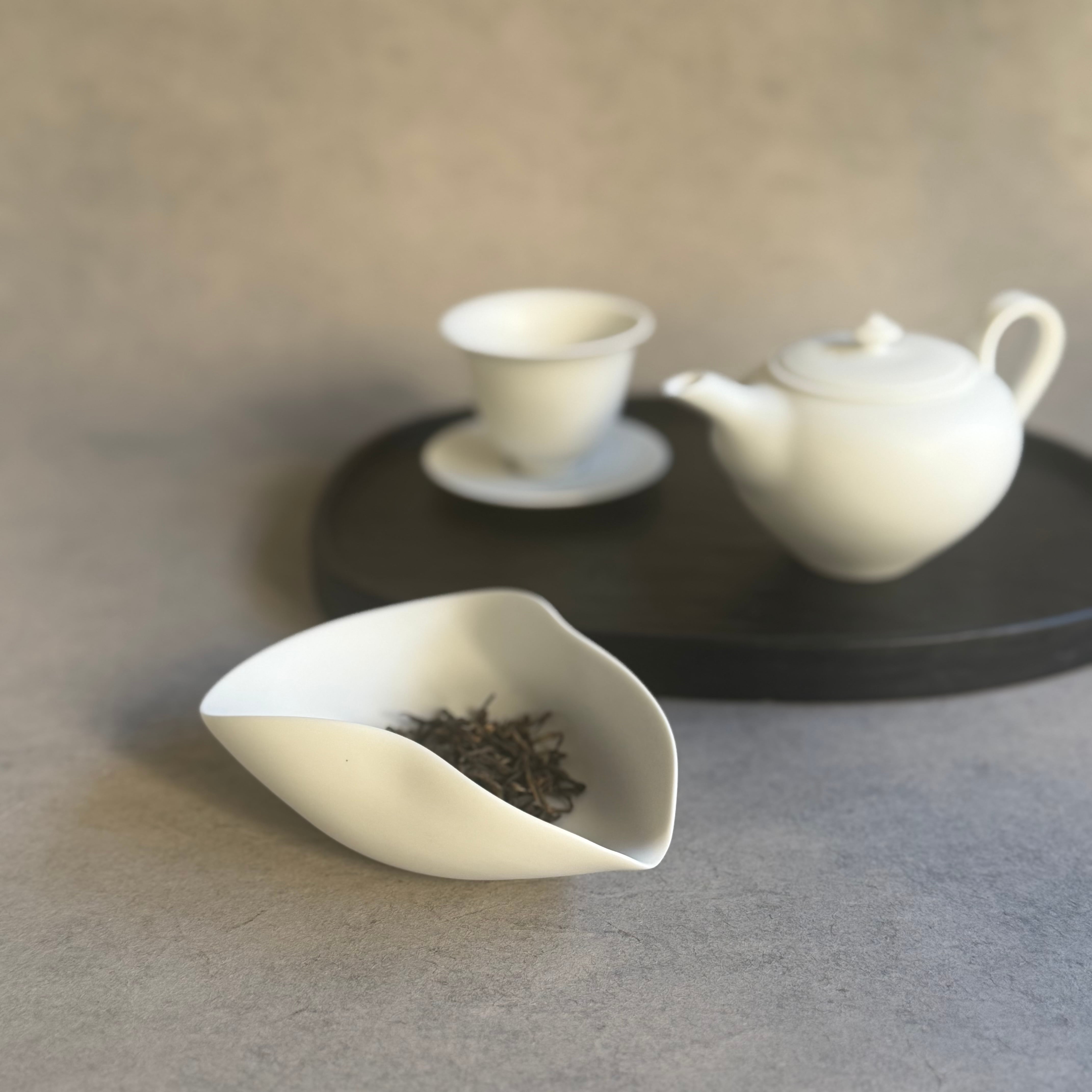 透過性の高い磁器土をロクロ成形し、無釉薬の焼き締めで制作。