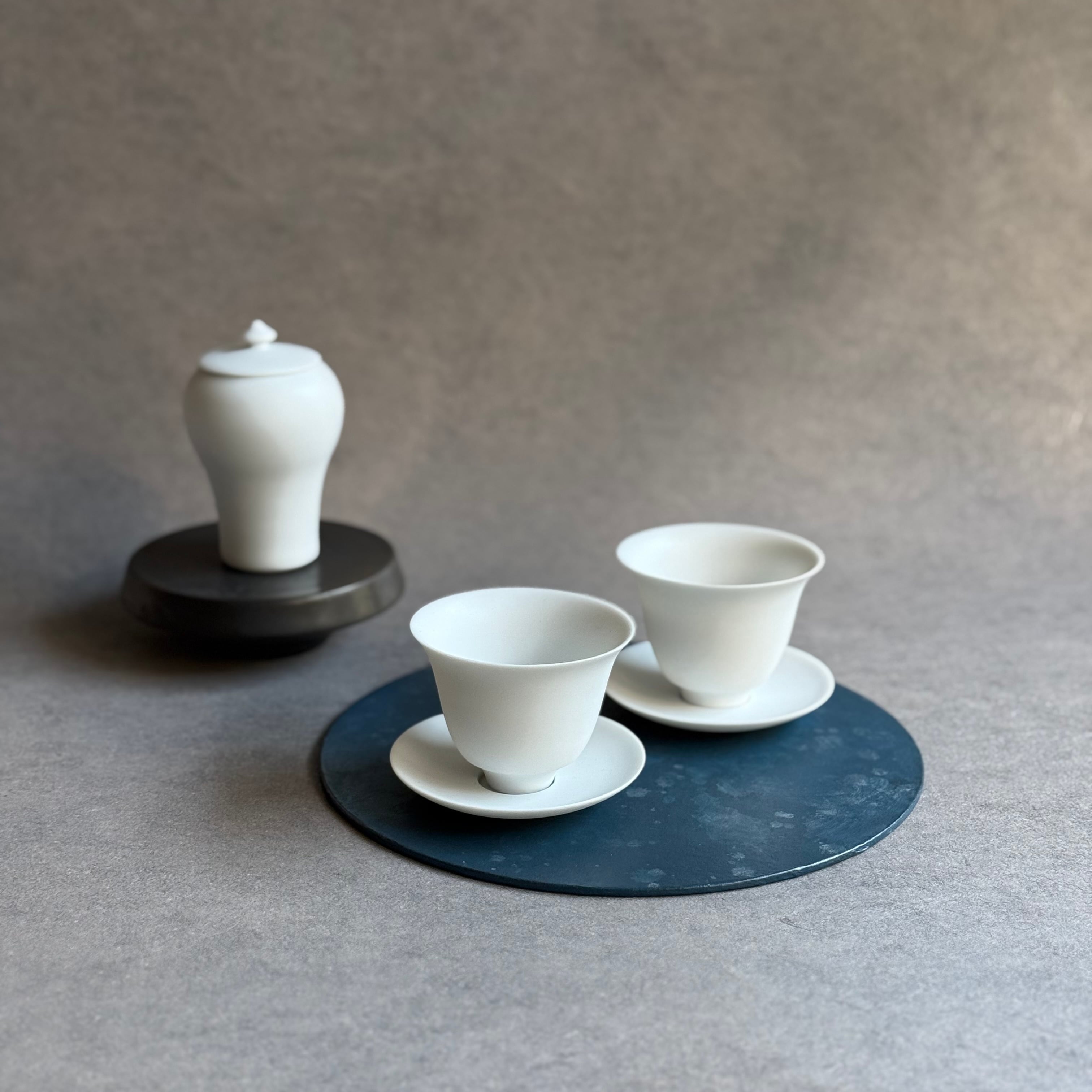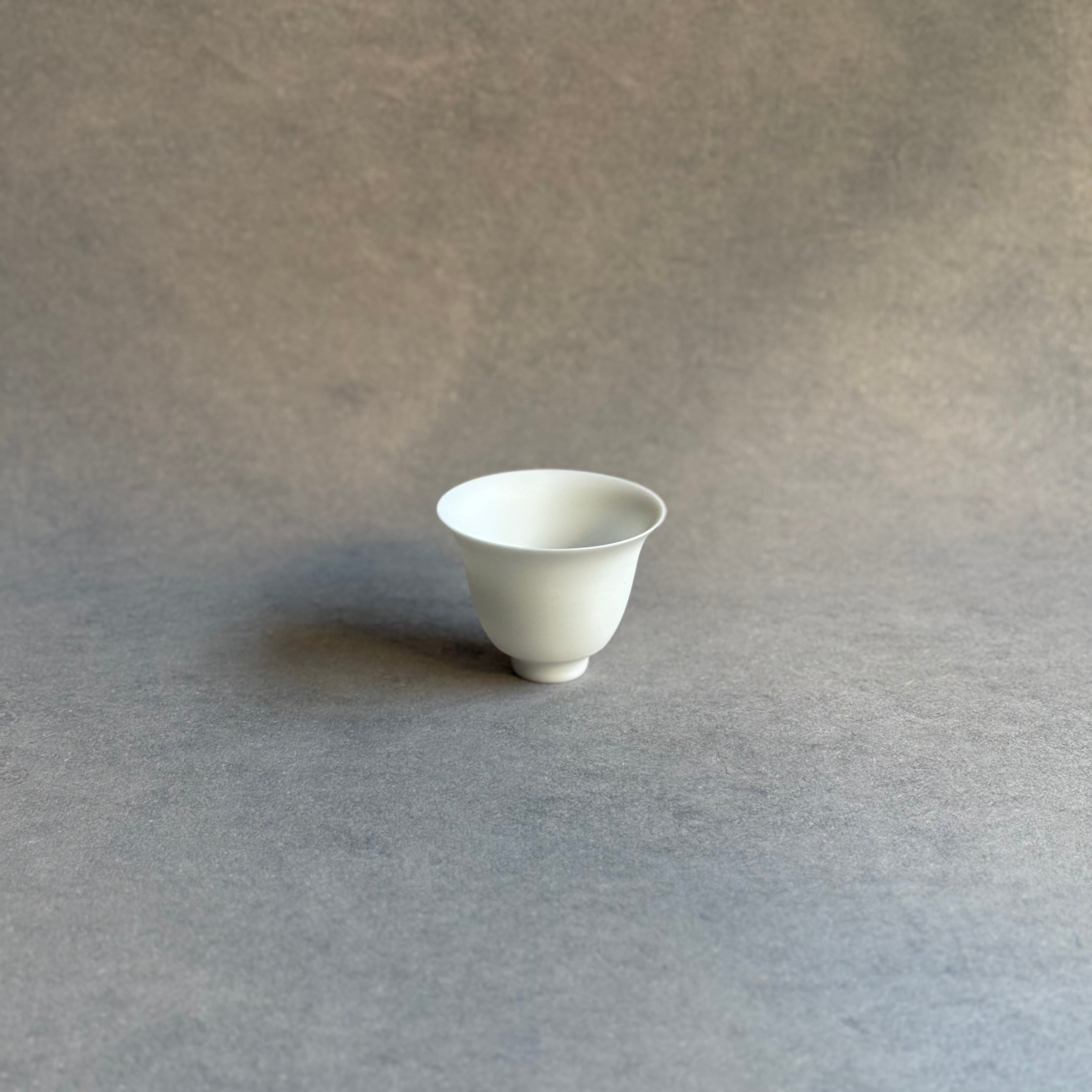 透過性の高い磁器土をロクロ成形し、無釉薬の焼き締めで制作。